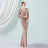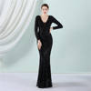 فستان طويل من YIDINGZS مزين بالترتر ذو أكمام طويلة ورقبة على شكل حرف V مع خطوط حورية البحر وحفلات ليلية طويلة باللون الذهبي والأسود
