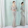 فستان طويل من YIDINGZS مزين بالترتر ذو أكمام طويلة ورقبة على شكل حرف V مع خطوط حورية البحر وحفلات ليلية طويلة باللون الذهبي والأسود