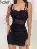 فستان قصير بحمالات شبكية مثير من klالغريبة فستان صيفي غير رسمي ضيق ستريتش للشاطئ فساتين نسائية جديدة