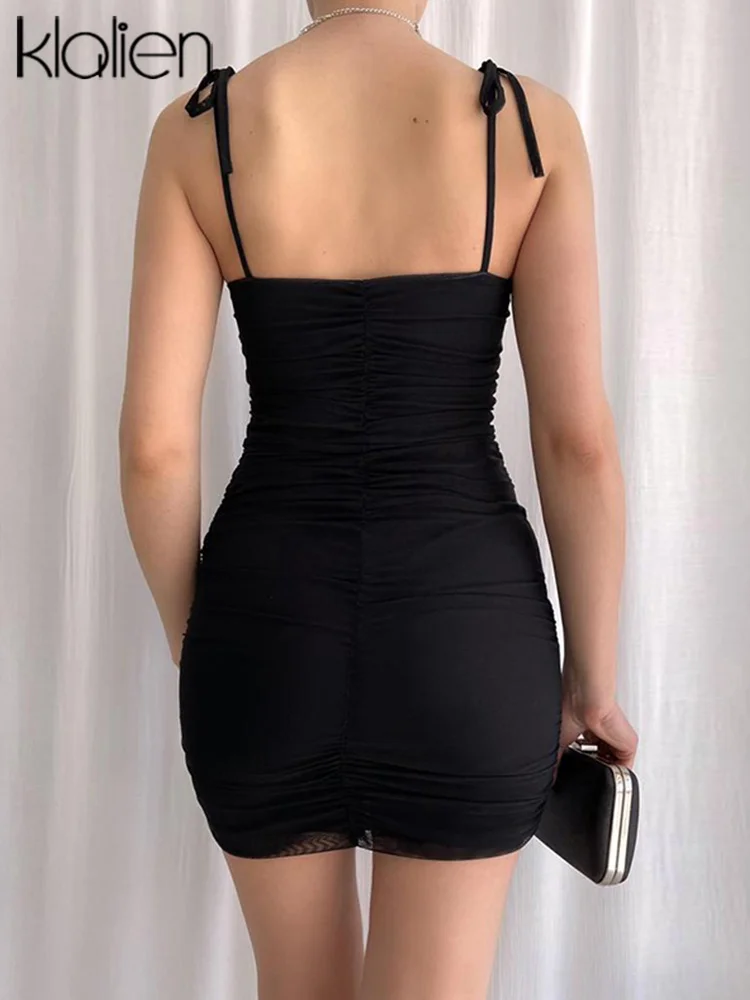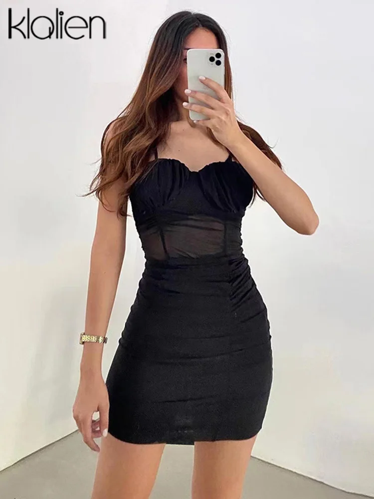 فستان قصير بحمالات شبكية مثير من klالغريبة فستان صيفي غير رسمي ضيق ستريتش للشاطئ فساتين نسائية جديدة