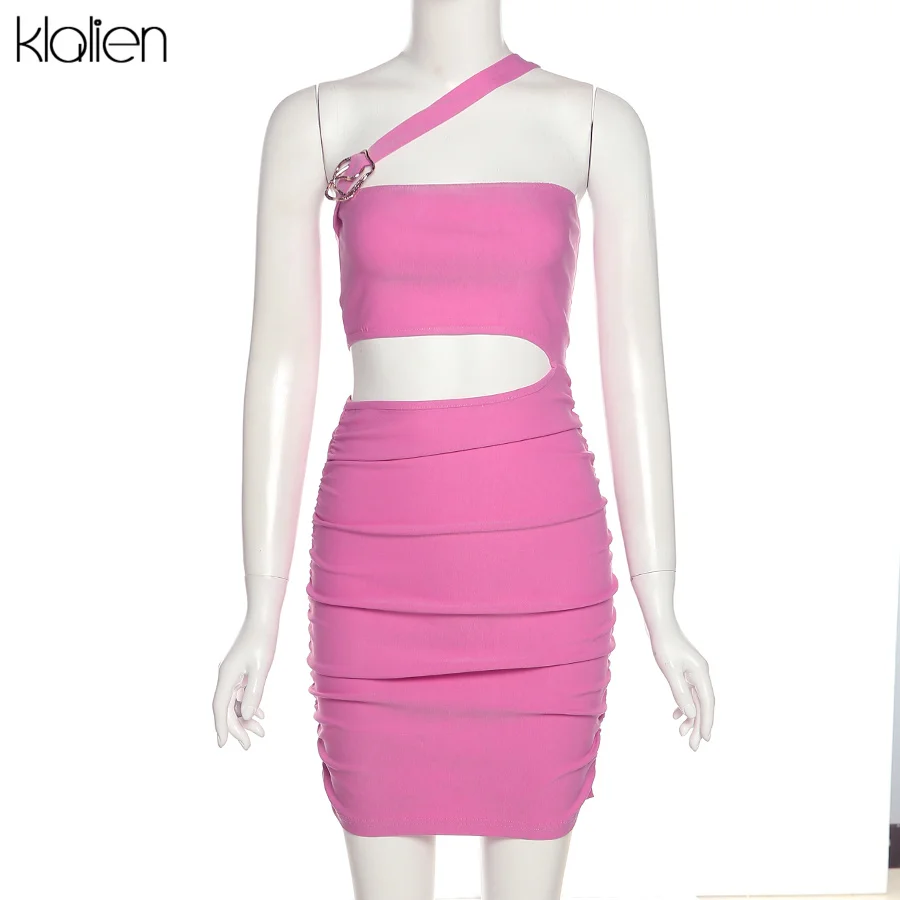 فستان قصير ضيق مفرغ بكتف واحد مثير من klالغريبة للنساء فساتين صيفية لحفلات الشاطئ ملابس الشارع