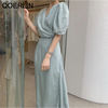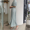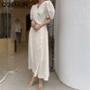 فستان نسائي من QOERLIN بأكمام قصيرة ورقبة على شكل v فستان برباط وأكمام قصيرة فستان نسائي كوري أنيق فساتين قميص غير رسمية أبيض