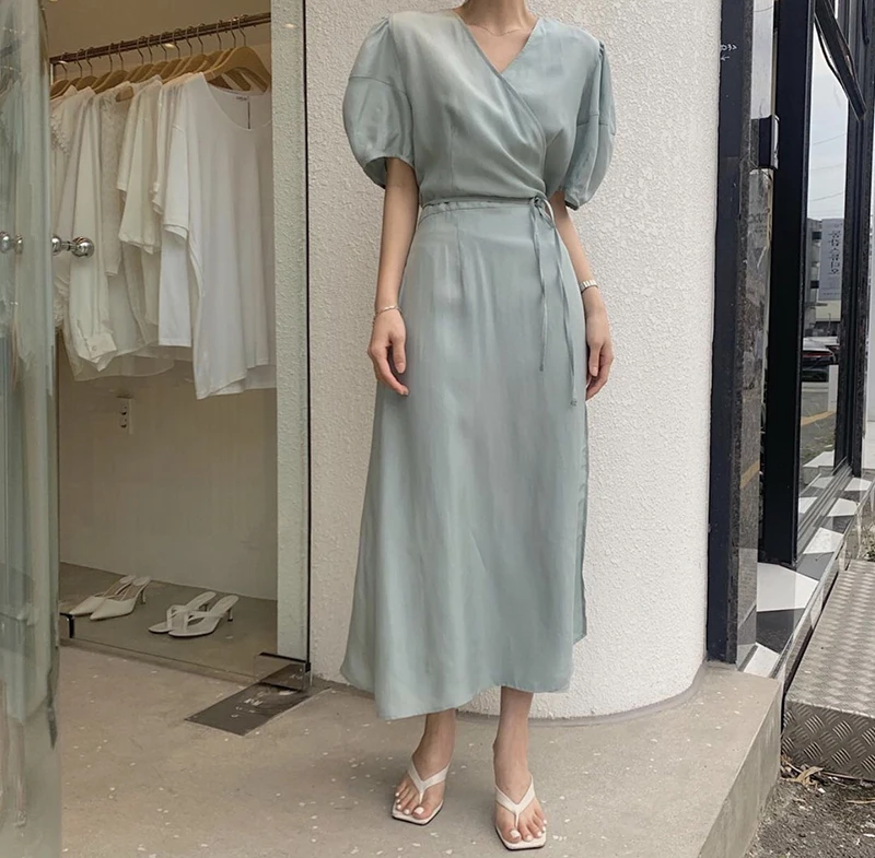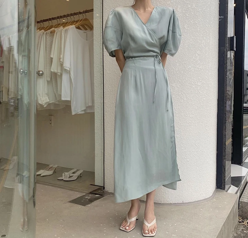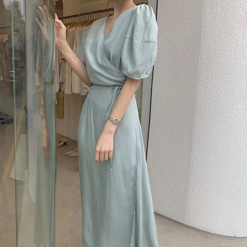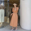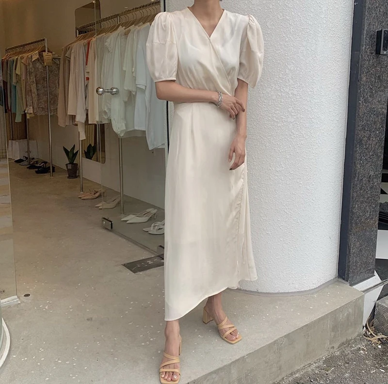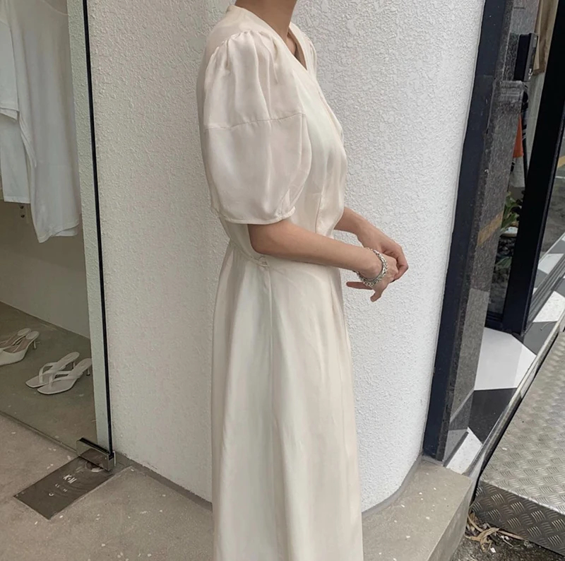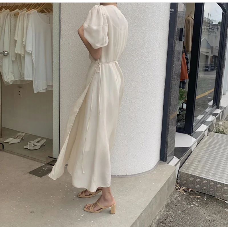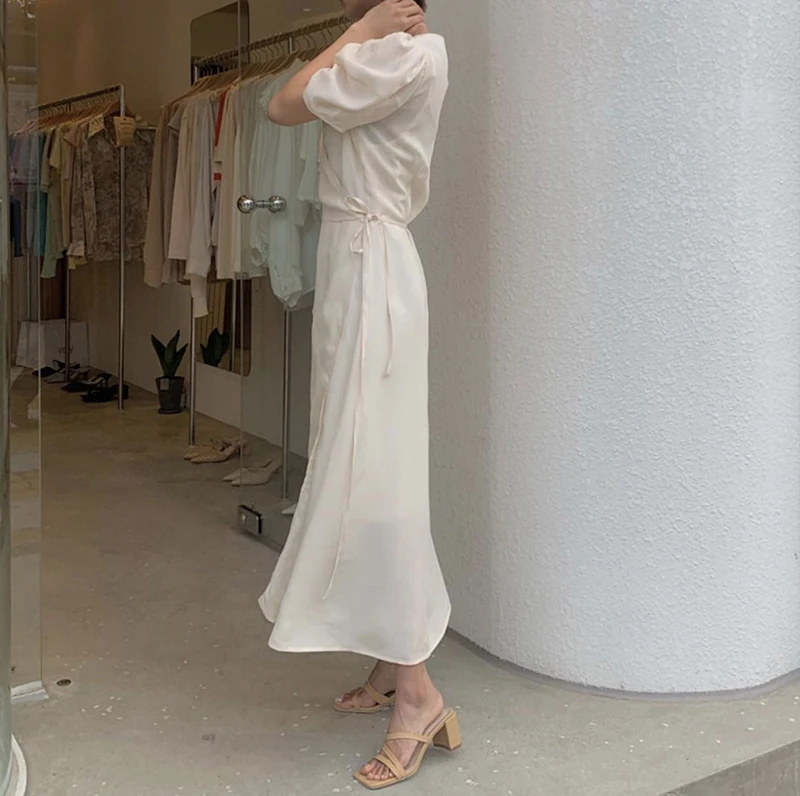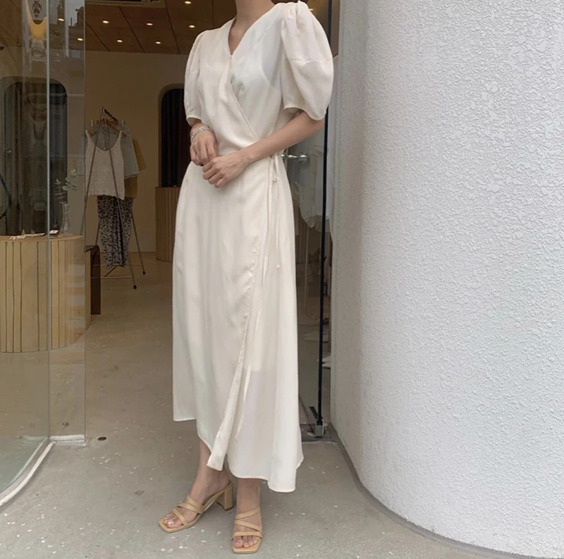 فستان نسائي من QOERLIN بأكمام قصيرة ورقبة على شكل v فستان برباط وأكمام قصيرة فستان نسائي كوري أنيق فساتين قميص غير رسمية أبيض