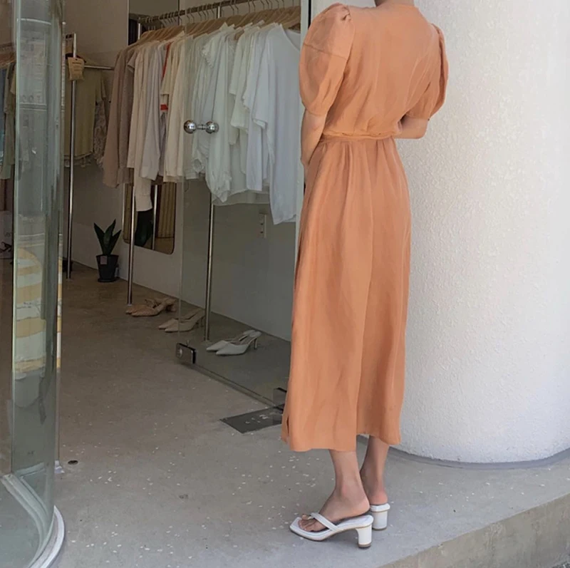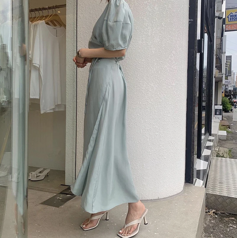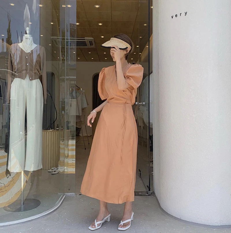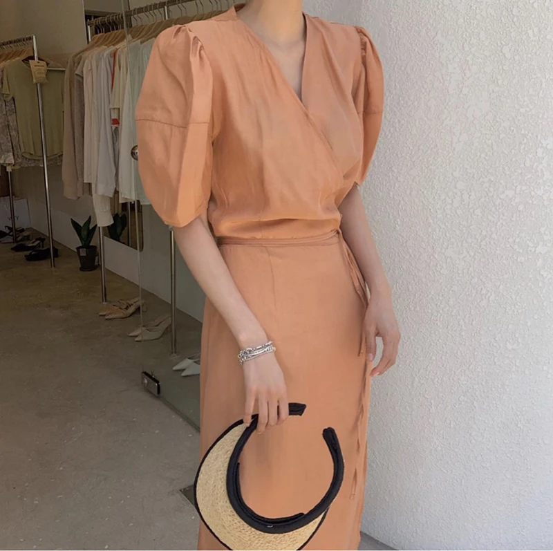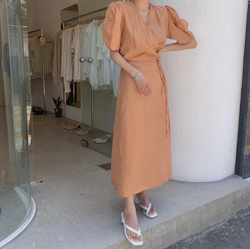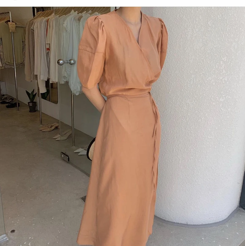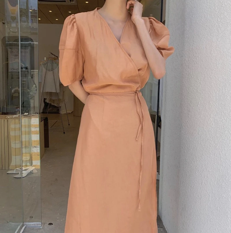 فستان نسائي من QOERLIN بأكمام قصيرة ورقبة على شكل v فستان برباط وأكمام قصيرة فستان نسائي كوري أنيق فساتين قميص غير رسمية أبيض