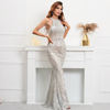 فستان YIDINGZS أنيق بدون أكتاف فضي مزين بالترتر للنساء جديد للحفلات فستان طويل للحفلات الراقصة 18126