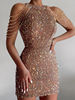 فستان YIDINGZS قصير بكتف مكشوف باللون الذهبي مزين بالترتر فستان سهرة مثير للنساء موضة 18607
