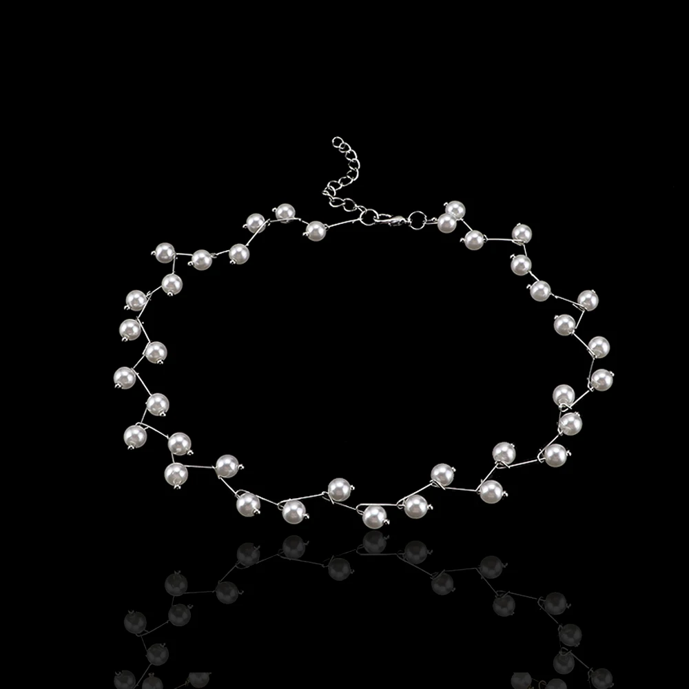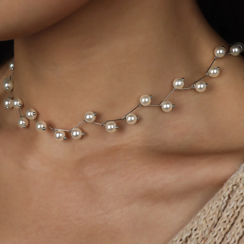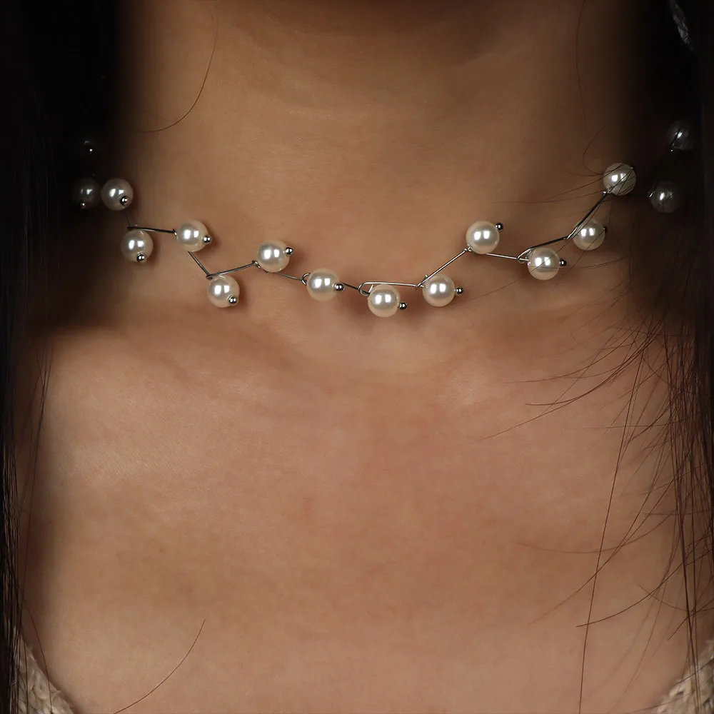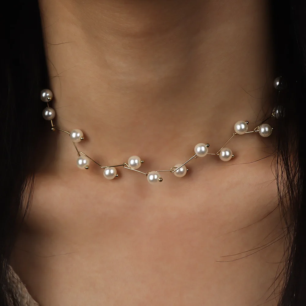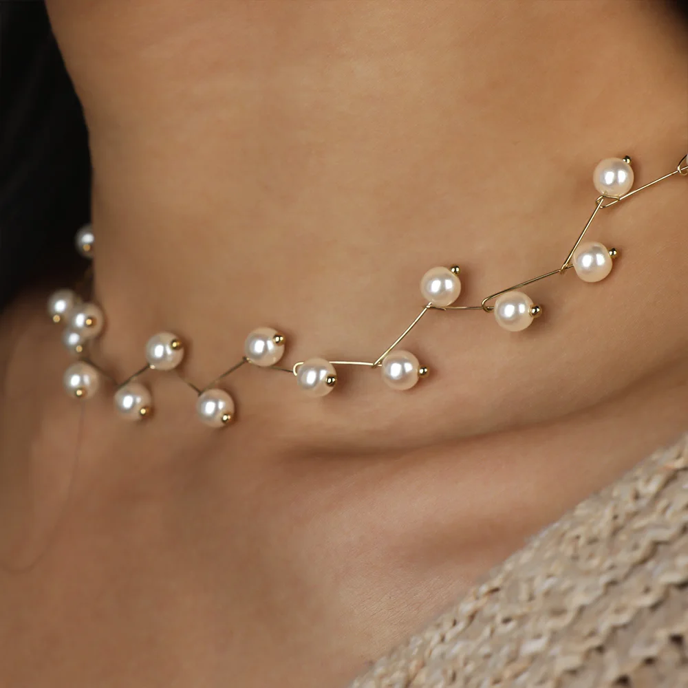 قلادات من اللؤلؤ المقلد غير المنتظم للنساء ، سلسلة متعددة الخطوط ، عقد الزفاف ، الترقوة ، مجوهرات عنق بسيطة