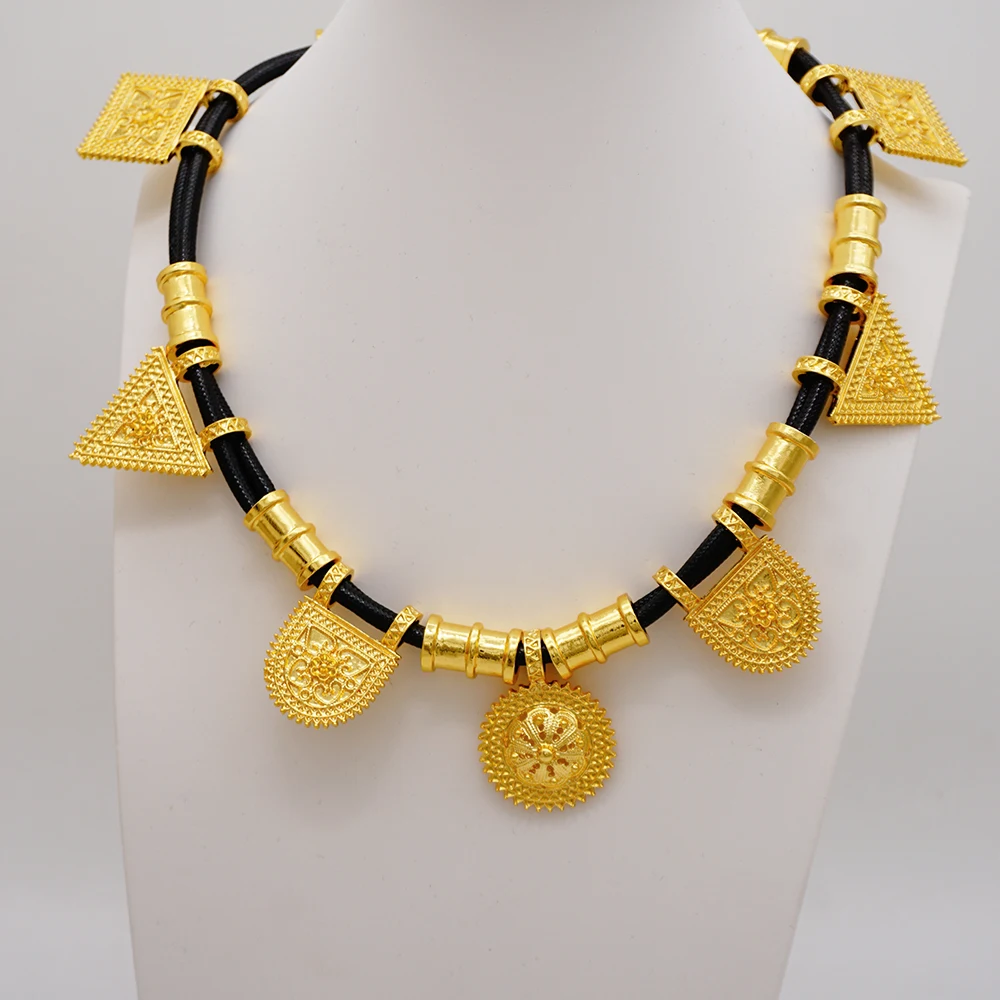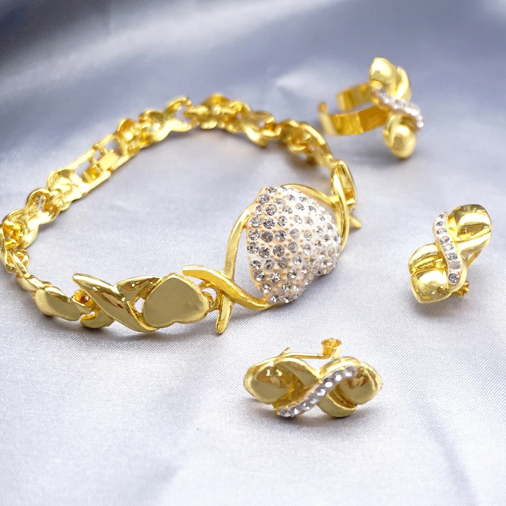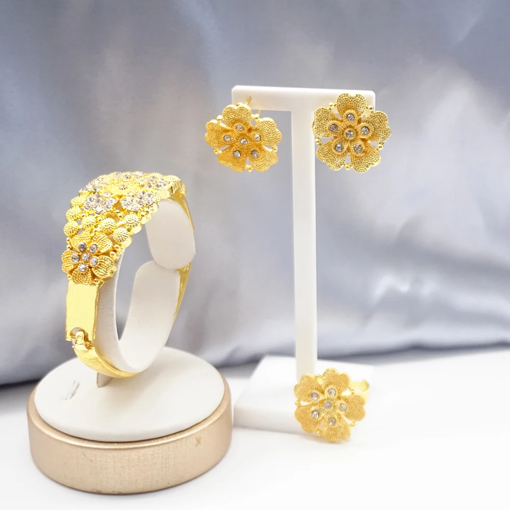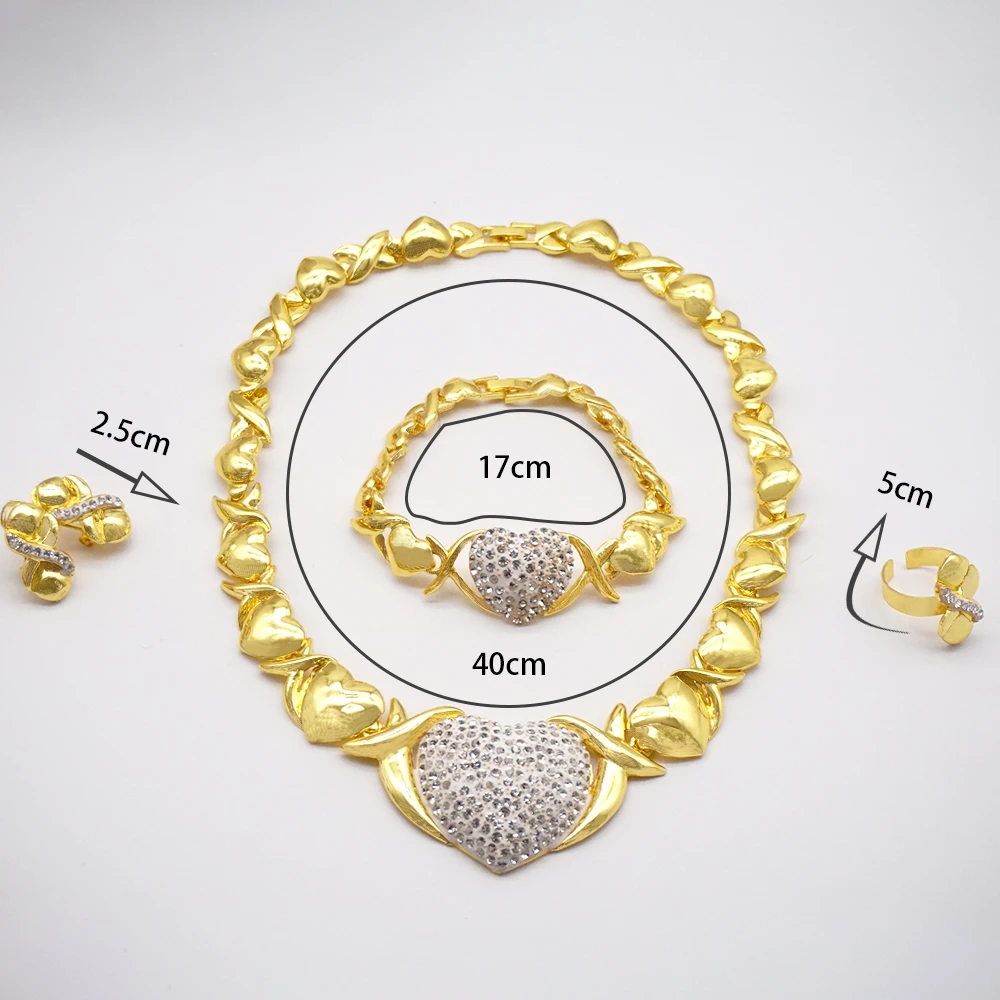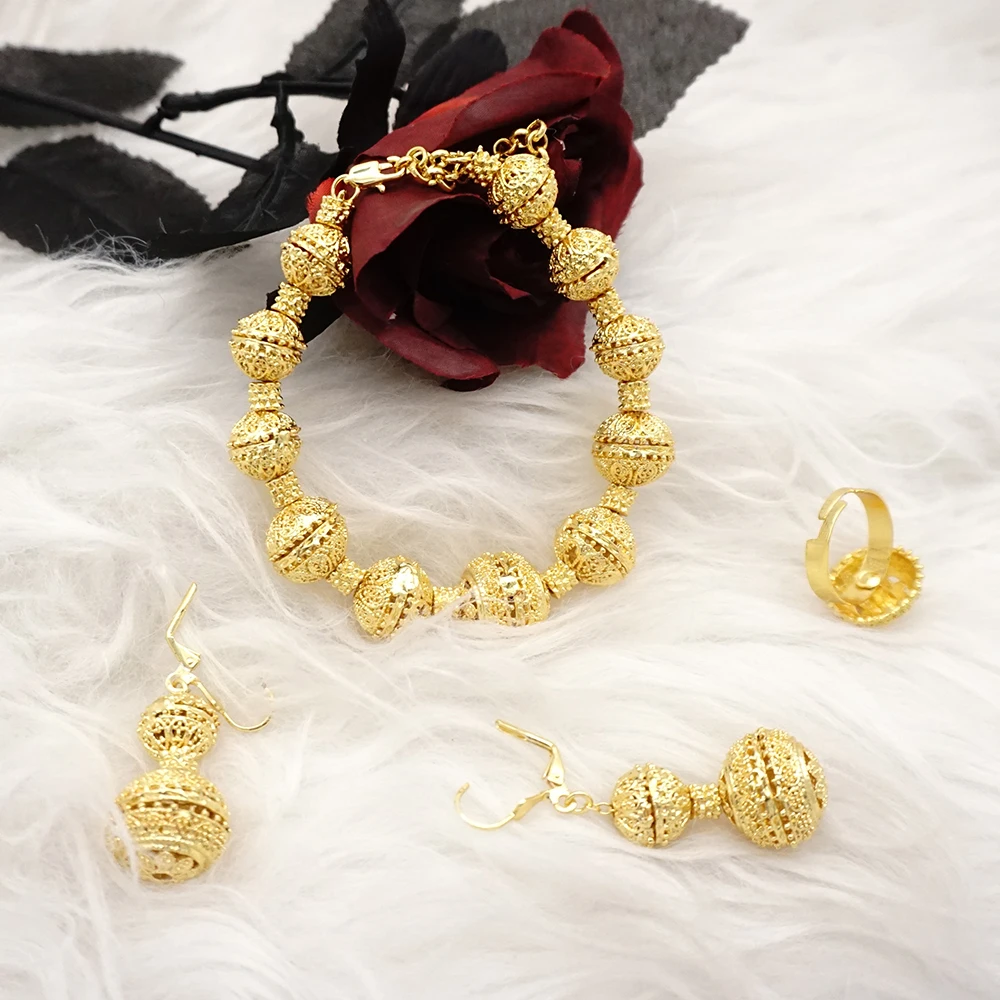 قلادة مجموعات للنساء دبي الذهب الأفريقي اللون طقم مجوهرات العروس أقراط خواتم الهندي النيجيري مجوهرات الزفاف مجموعة هدية