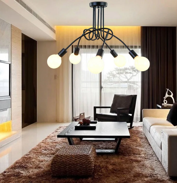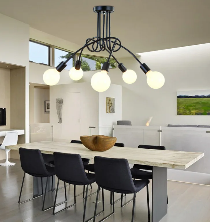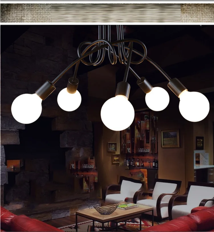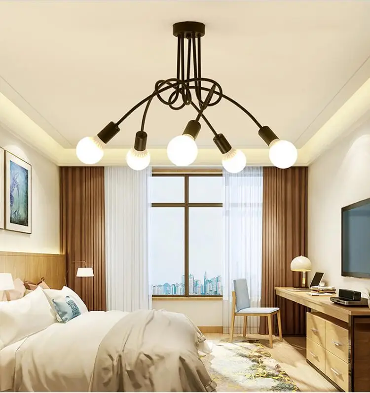 قلادة مصباح الحديد المطاوع LED الثريا ضوء غرفة نوم 3/5head تركيبات مصابيح السقف غرفة المعيشة المنزل إضاءة للتزيين
