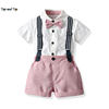 أفضل وأعلى موضة الرضع الصبي شهم وتتسابق قصيرة الأكمام قميص مع ربطة القوس فيونكة + الحمالات السراويل 2 قطعة بدلة طفل رضيع الملابس Bebe