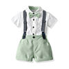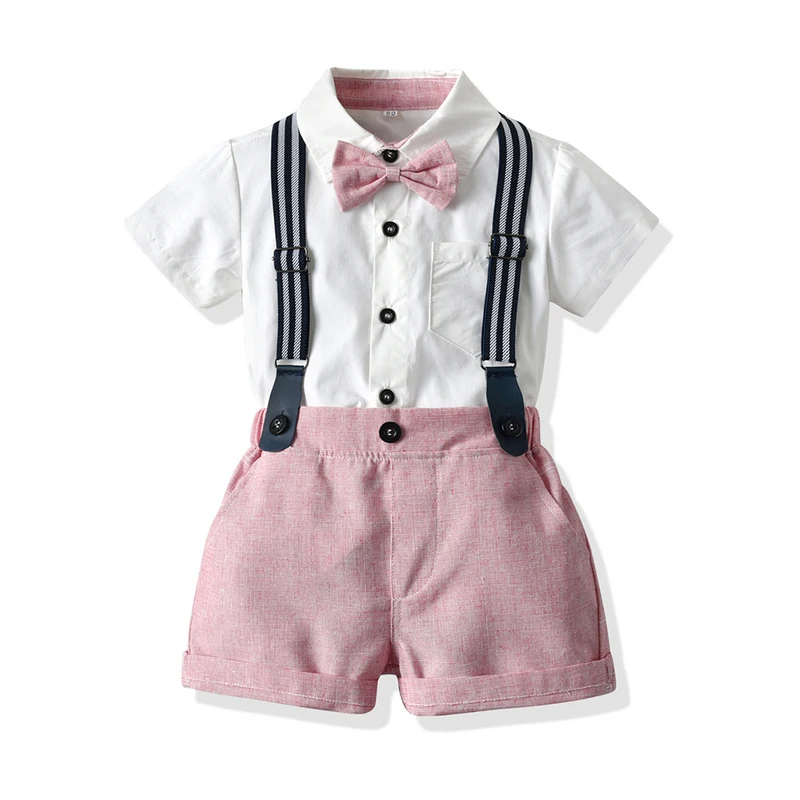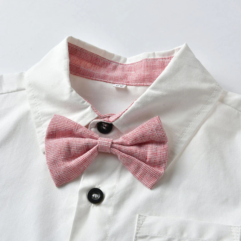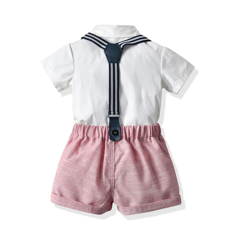 أفضل وأعلى موضة الرضع الصبي شهم وتتسابق قصيرة الأكمام قميص مع ربطة القوس فيونكة + الحمالات السراويل 2 قطعة بدلة طفل رضيع الملابس Bebe