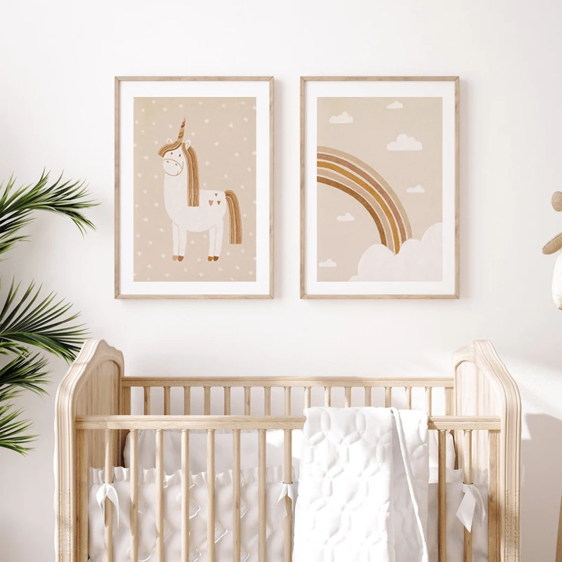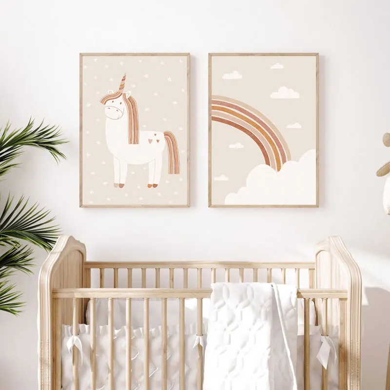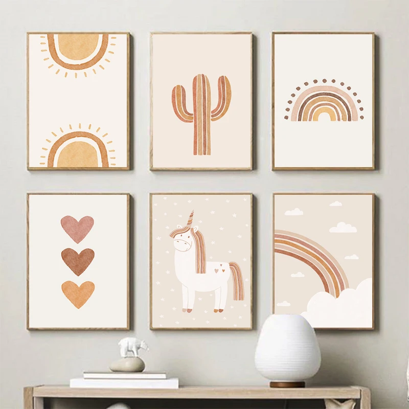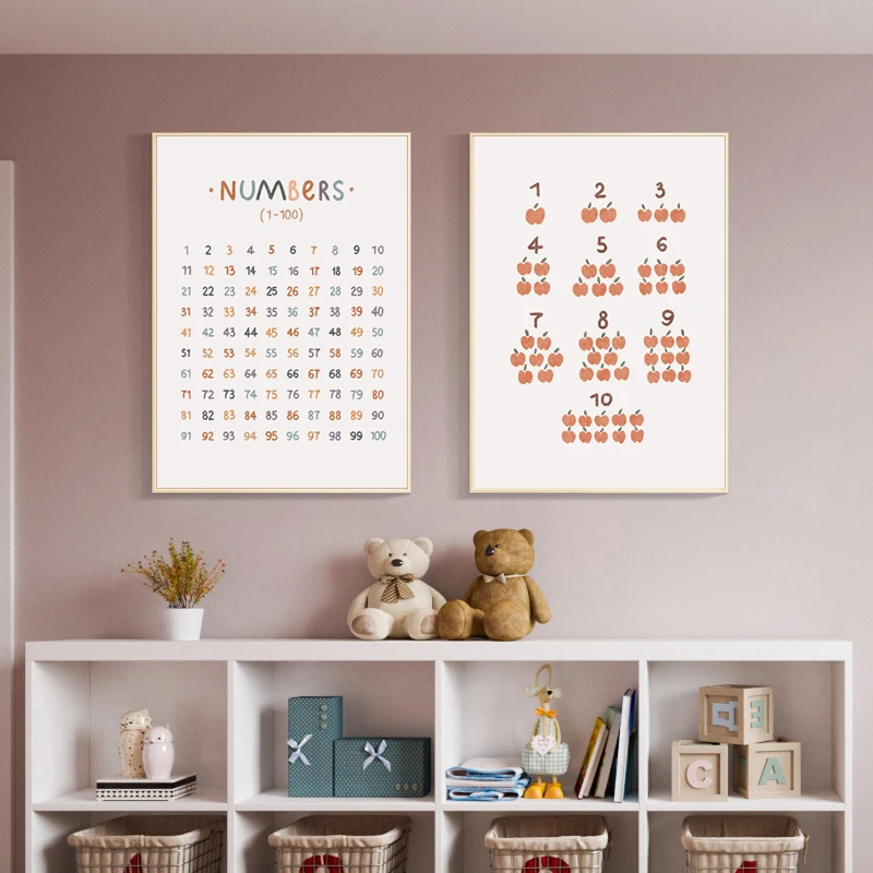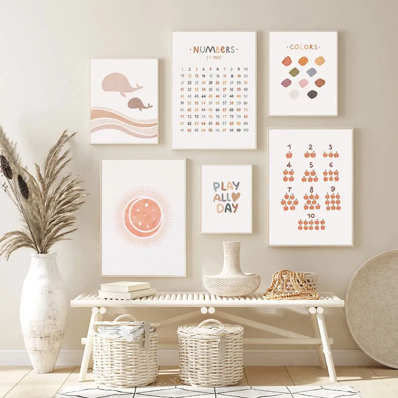 قوس قزح الأبجدية الأرقام الشمس القمر الرسم على لوحات القماش الجدارية الشمال الملصقات والتعليم يطبع جدار صور الاطفال غرفة ديكور