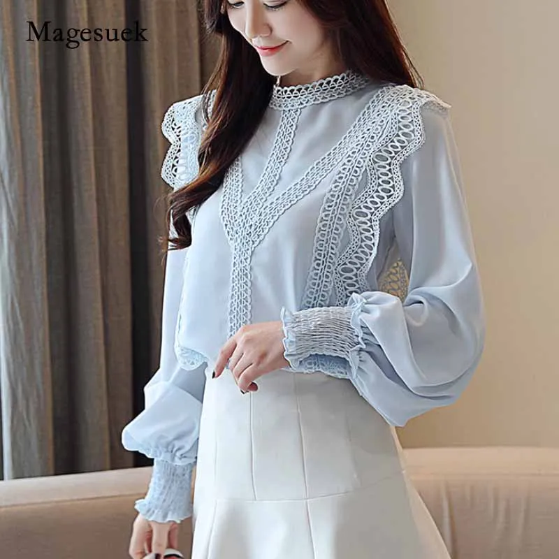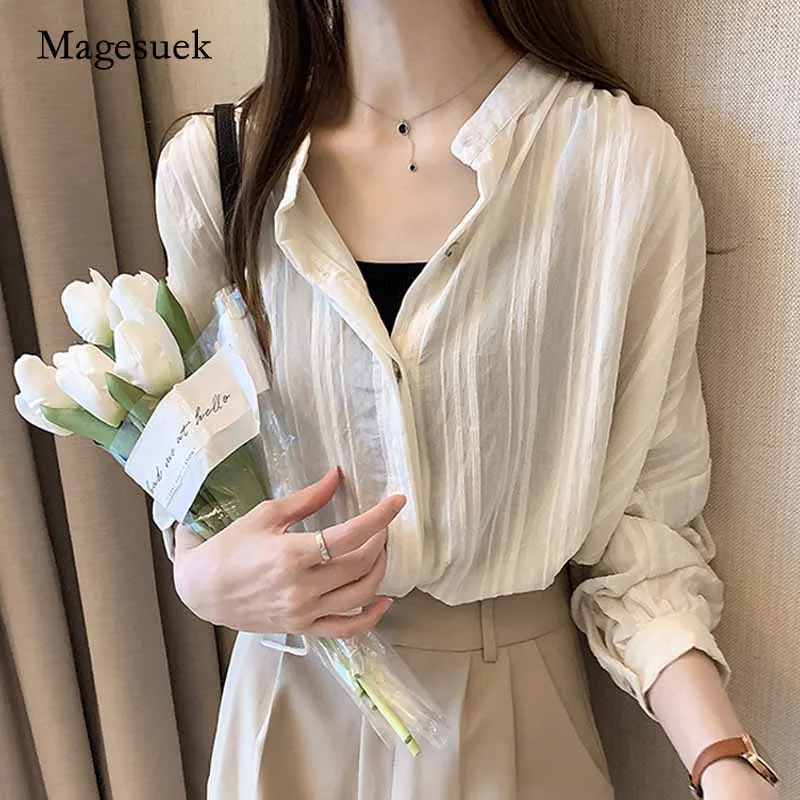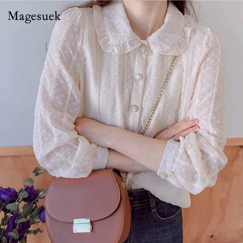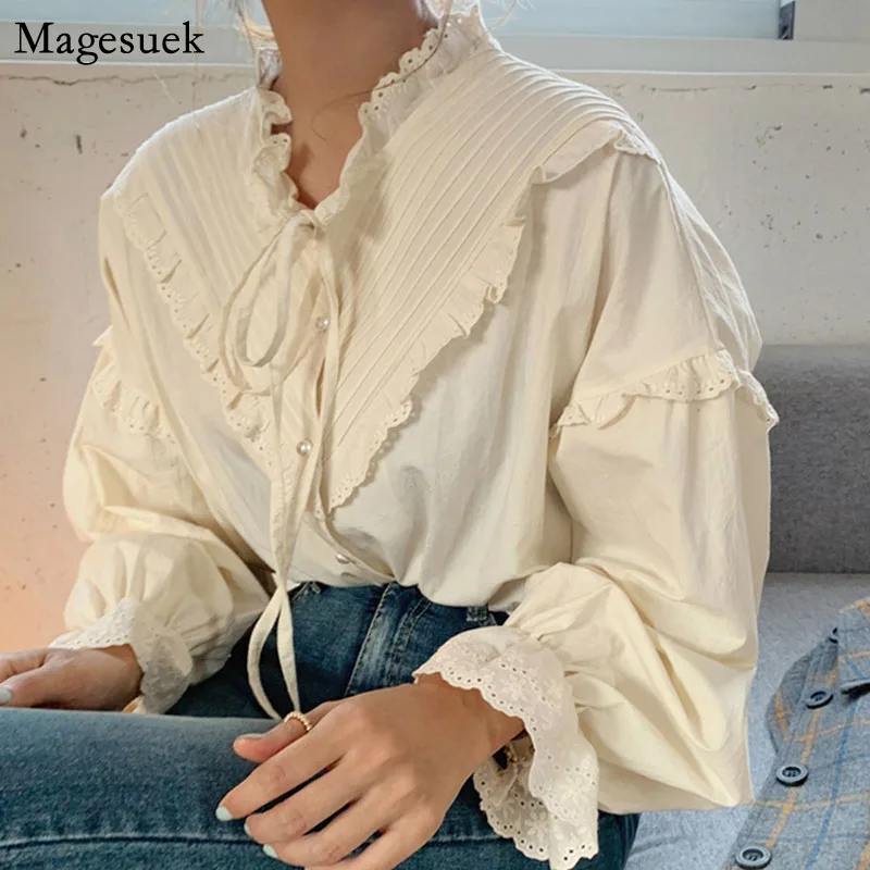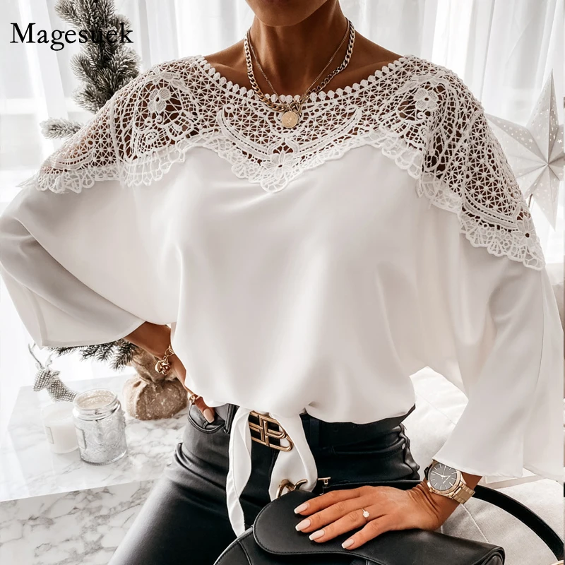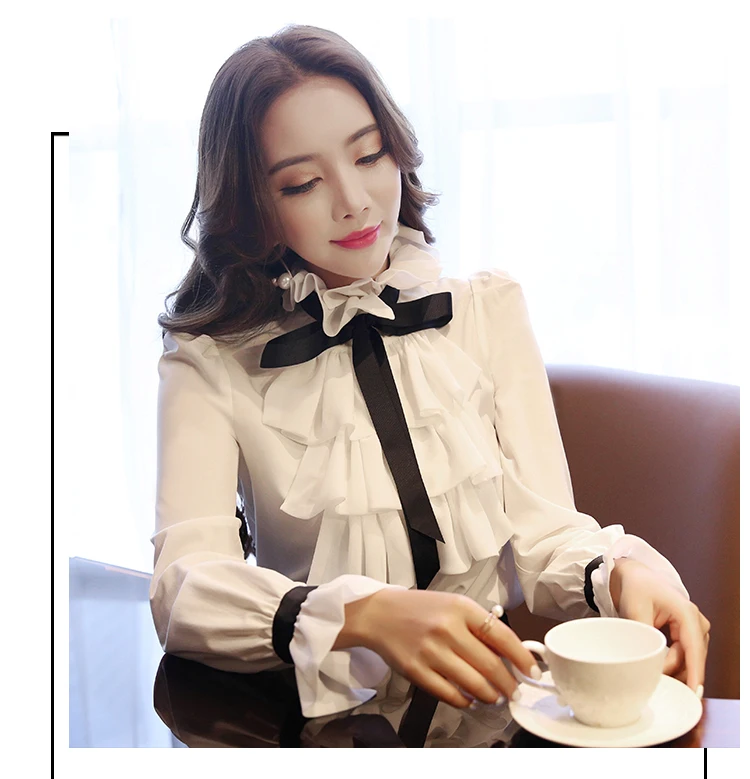 كارديجان نسائي بأكمام طويلة مع فيونكة واسعة ، بلوزة مكتب بيضاء مع كشكش ، قميص شيفون سادة ، ملابس نسائية 2020 ، خريف 11101