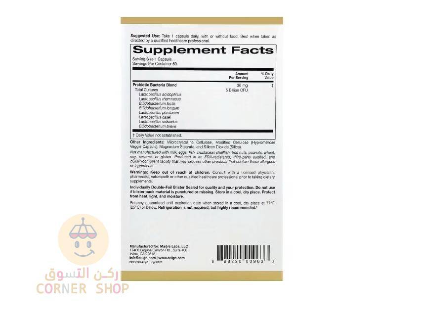 • يحتوي على 5 مليارات وحدة تشكيل مستعمرة لكل كبسولة نباتية