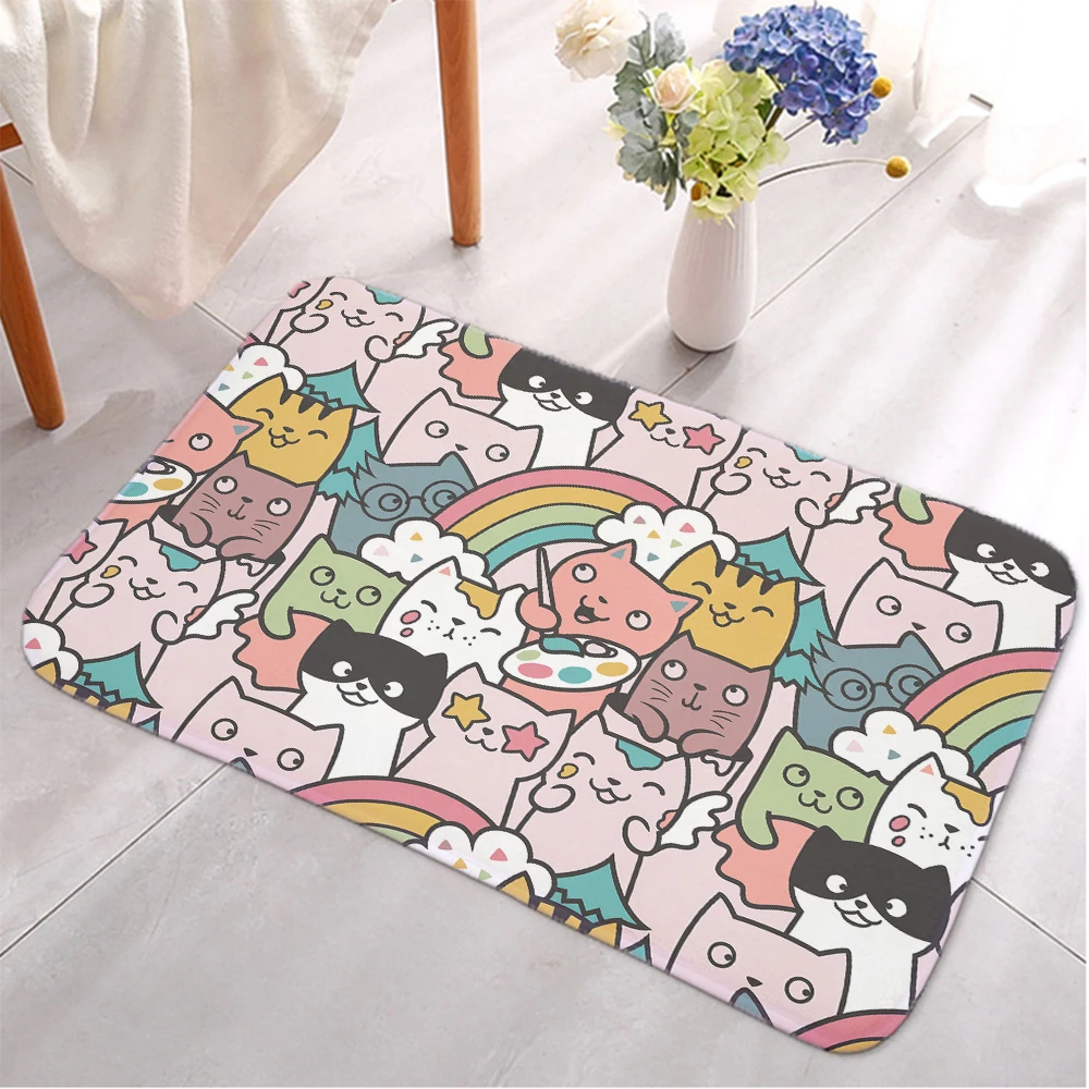 لطيف القط الكرتون السجاد الفانيلا لينة عدم الانزلاق ممسحة الحمام المطبخ مدخل الممر الطابق حصيرة شرفة ماصة داخلي البساط