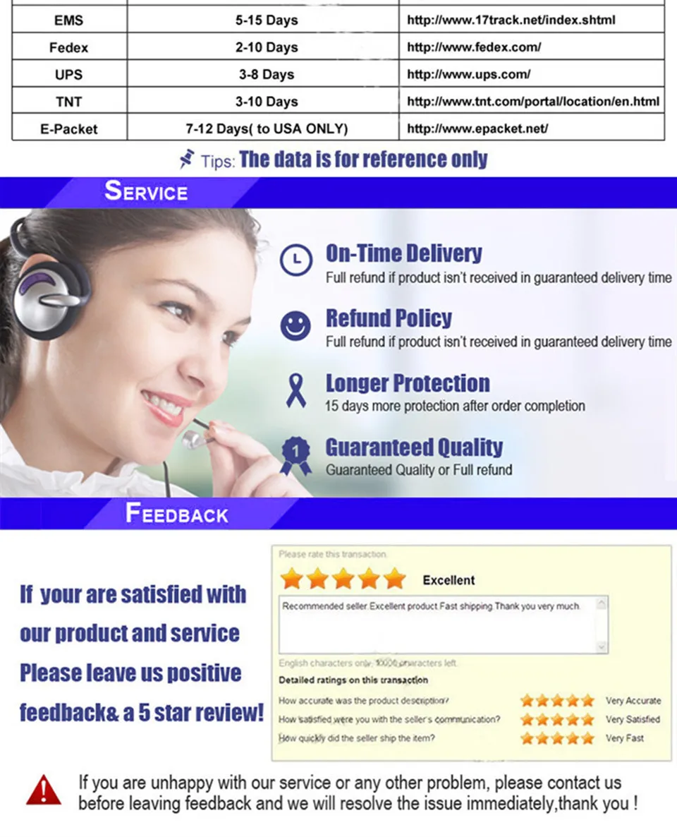 • ضمان استرداد الأموال: هل هناك شيء غير صحيح تمامًا؟ إذا لم تكن راضيًا تمامًا عن مشترياتك ، فيمكنك إرجاعها في غضون 15 يومًا لاسترداد الأموال بالكامل