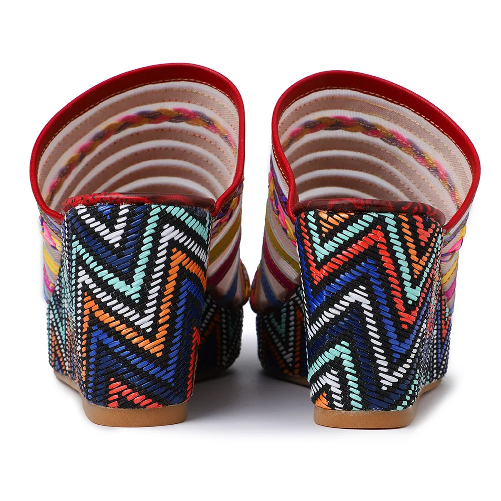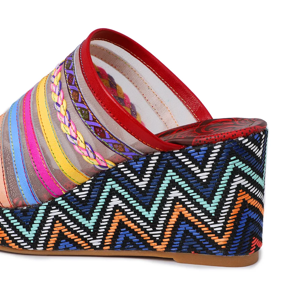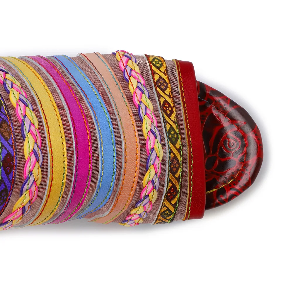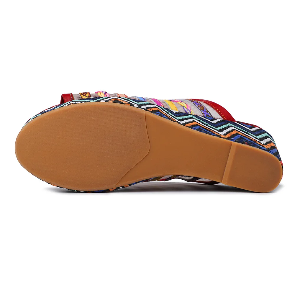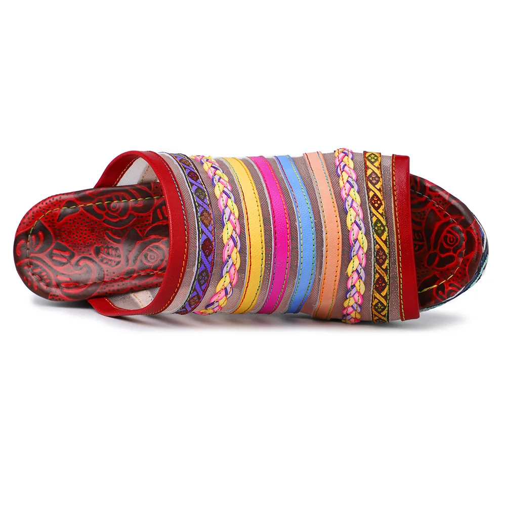لينة حقيقية الأحذية الجلدية الربط رسمت باليد الزهور نمط إسفين كعب الصنادل اليومية أحذية أنيقة مريحة