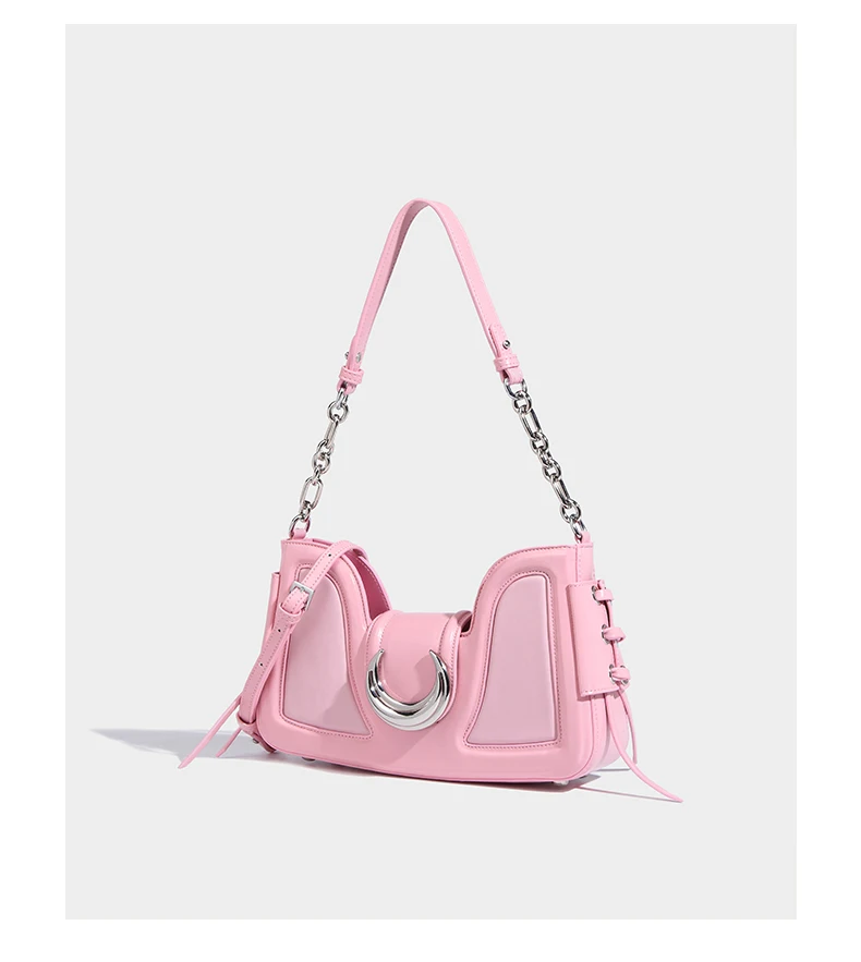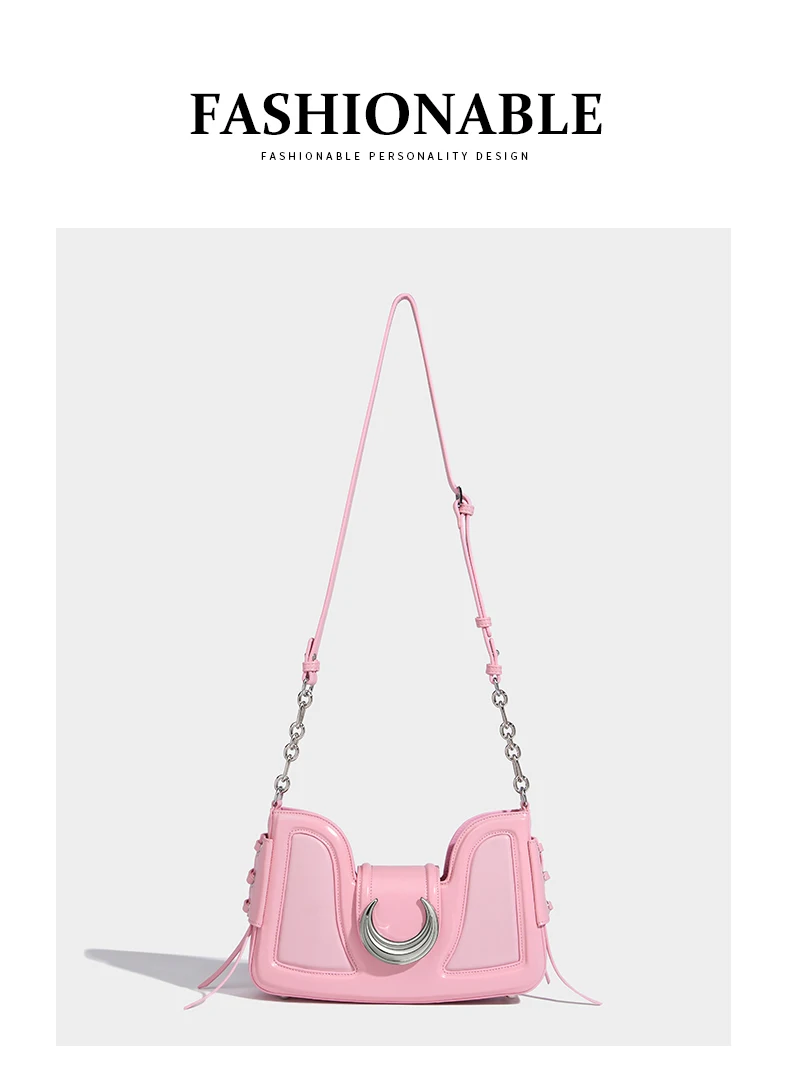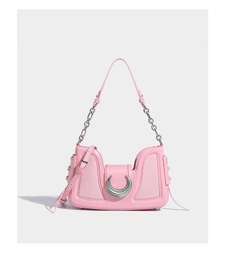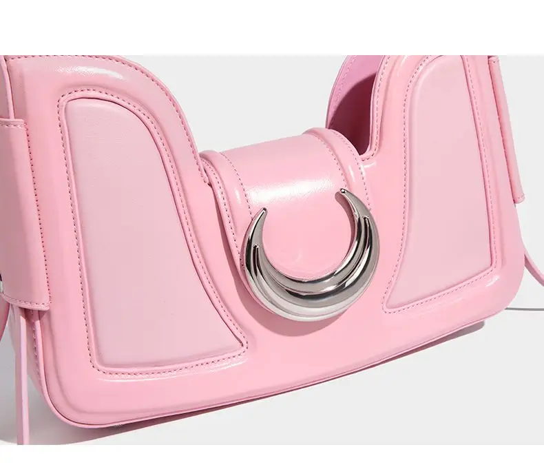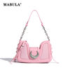 مابولا حقائب كتف عصرية فاخرة للنساء تصميم نصف قمر وردي محفظة للهاتف حقيبة كروس نسائية مصنوعة من الجلد الصناعي بلون واحد
