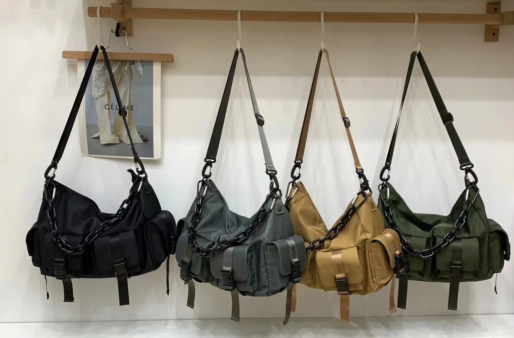 مابولا للجنسين متعددة جيب سلسلة حقائب الكتف زوجين المتشرد حقيبة كروسبودي سعة كبيرة حقيبة اليد عادية بسيطة رسول حقيبة أسود