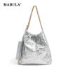 مابولا 2 قطعة مجموعة النساء حقائب الكتف بلون حقيبة حمل عادية تصميم فاخر موضة سلسلة حقائب مطوي محفظة من جلد PU