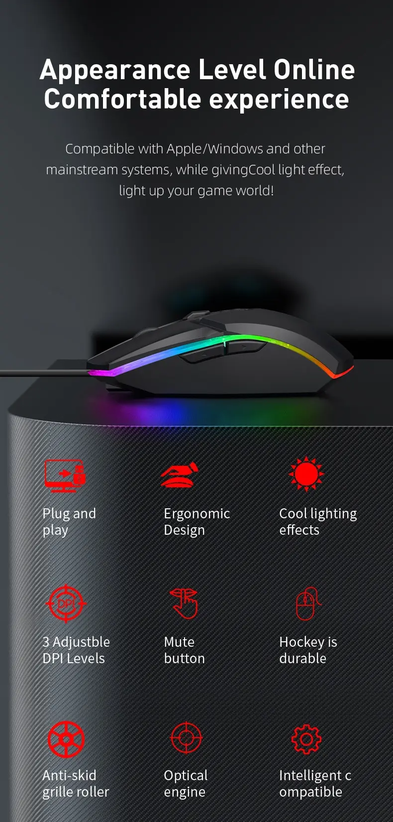 • تصميم 6 أزرار :يمكنك التنقل بسهولة والتحكم في جهاز الكمبيوتر الخاص بك باستخدام 6 أزرار ، بما في ذلك عجلة التمرير ، والأزرار اليمنى واليسرى القابلة للنقر ، والمزيد.