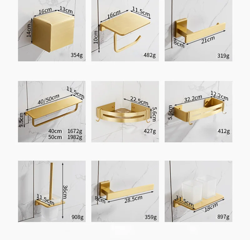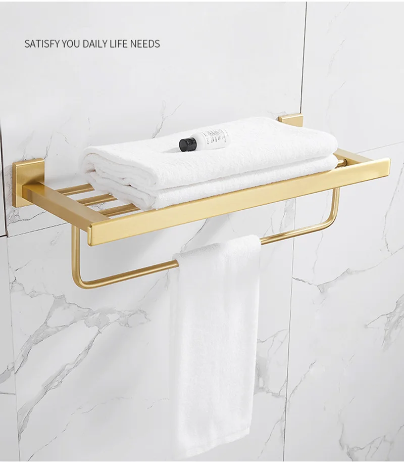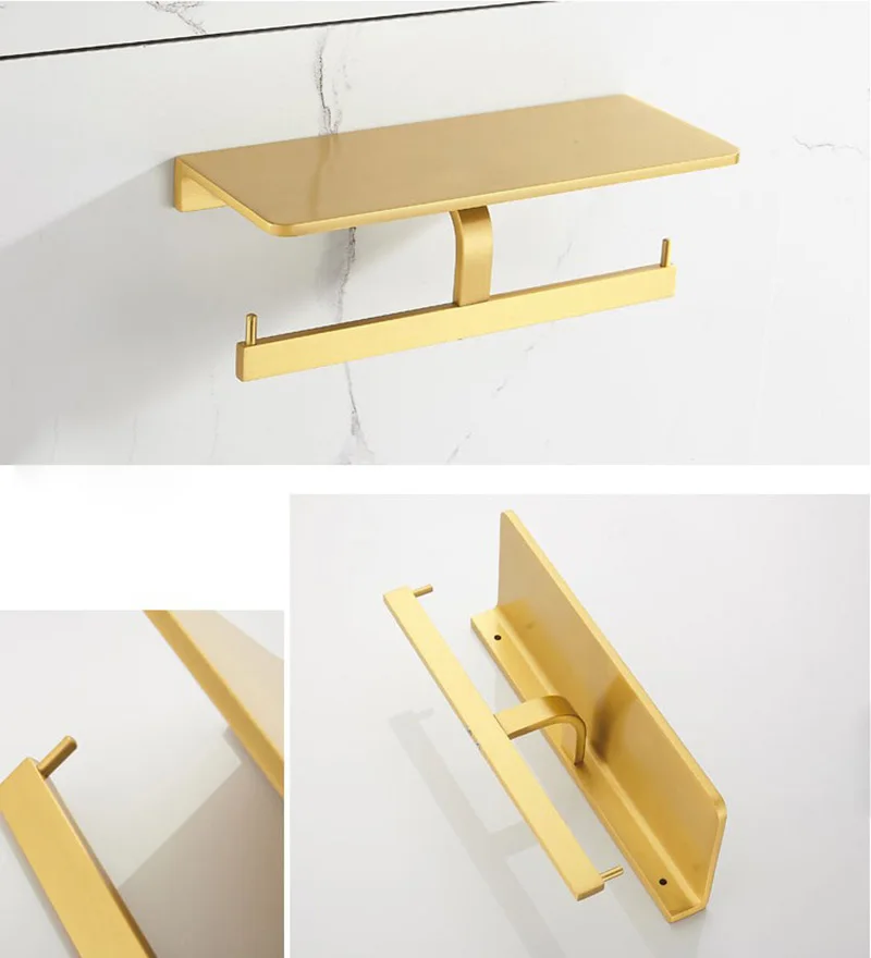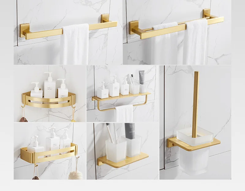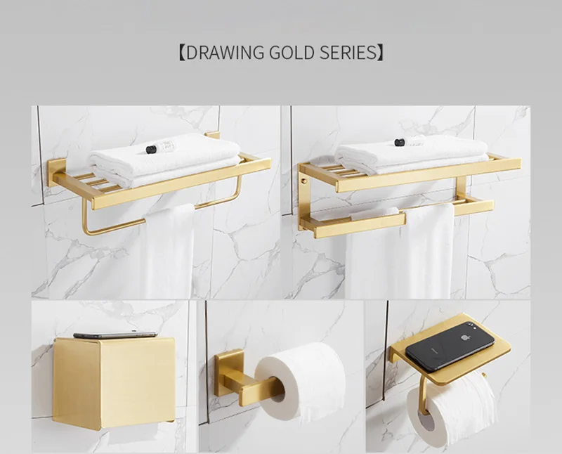 اكسسوارات الحمام مجموعة نحى الذهب الحمام الجرف ، منشفة الرف ، شماعة للمنشفة حامل الورق ، حامل فرشاة المرحاض حمام الأجهزة مجموعات