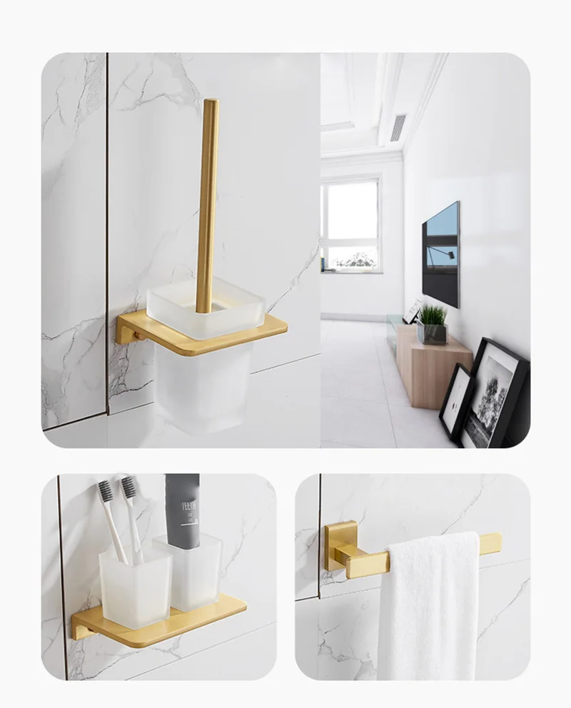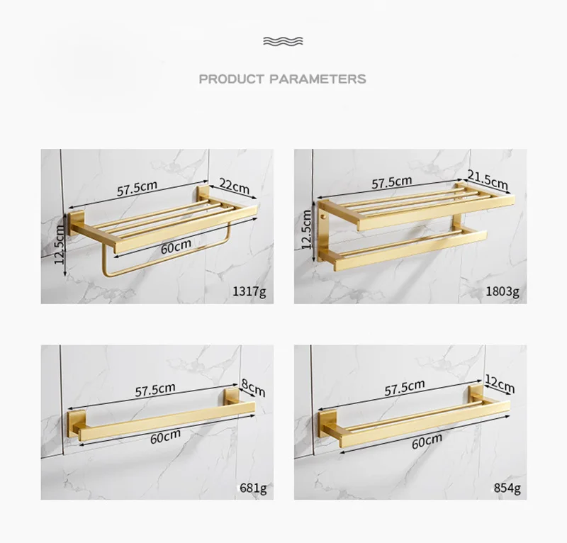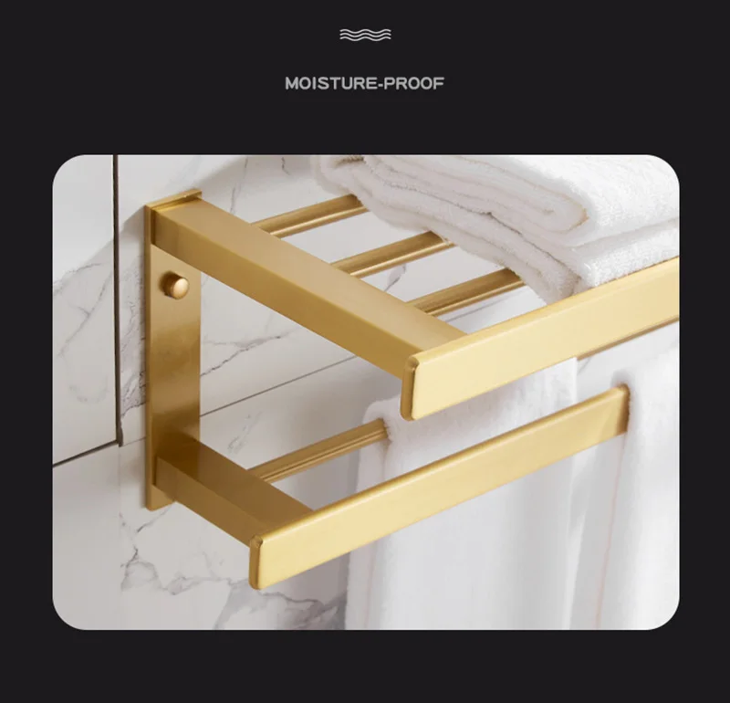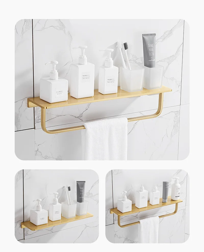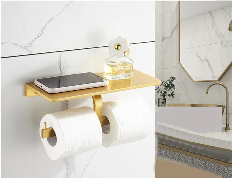 اكسسوارات الحمام مجموعة نحى الذهب الحمام الجرف ، منشفة الرف ، شماعة للمنشفة حامل الورق ، حامل فرشاة المرحاض حمام الأجهزة مجموعات
