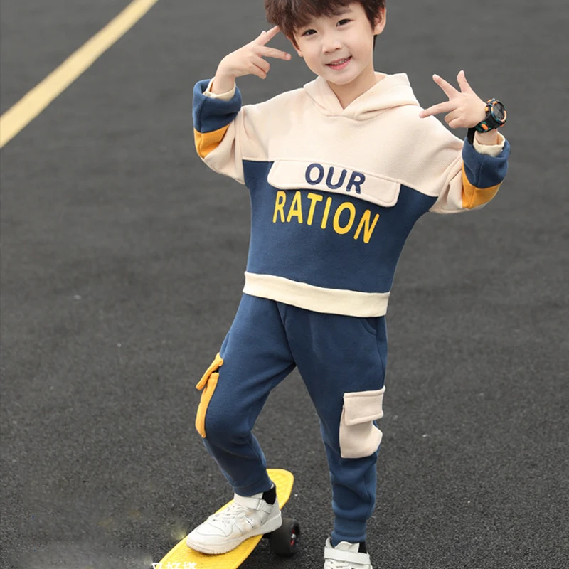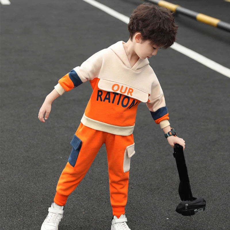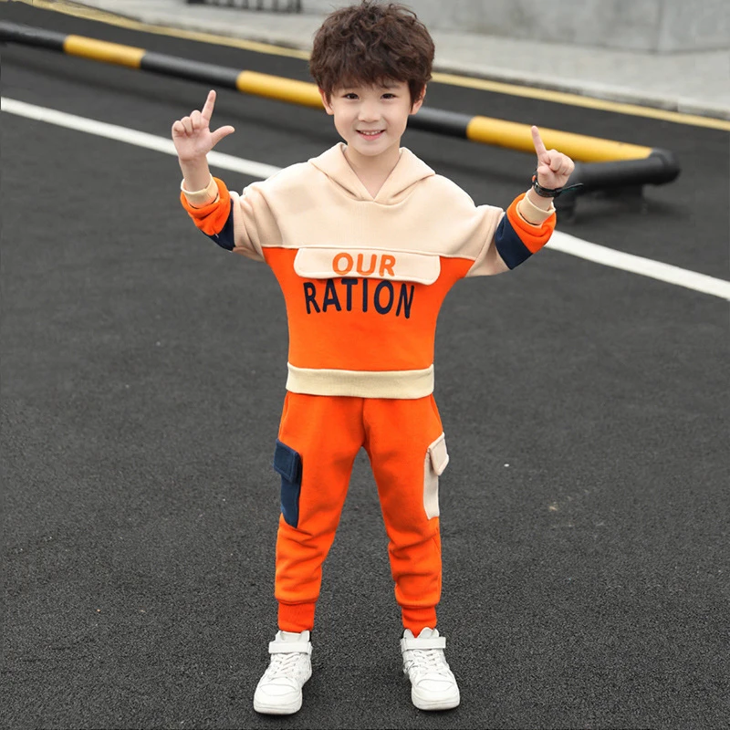ملابس الأطفال الفتيان والفتيات الدعاوى 2022 ربيع جديد قطعتين معطف بقلنسوة + الجانب جيب بنطلون المراهقين مجموعة ملابس الخريف