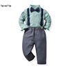 ملابس علوية للأطفال الأولاد مجموعة ملابس رجالية قميص بووتي بأكمام طويلة + أشرطة بنطلون طفل رضيع ملابس لحفلات الزفاف