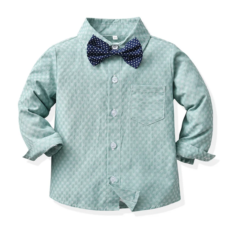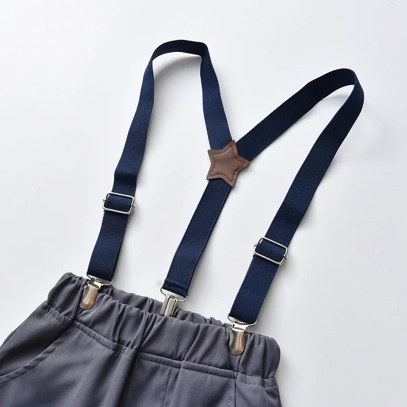 ملابس علوية للأطفال الأولاد مجموعة ملابس رجالية قميص بووتي بأكمام طويلة + أشرطة بنطلون طفل رضيع ملابس لحفلات الزفاف