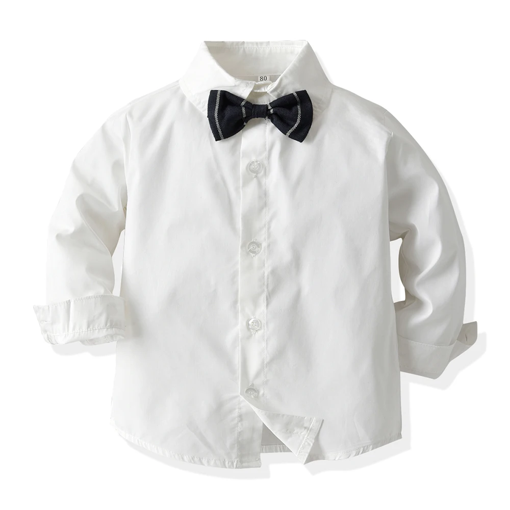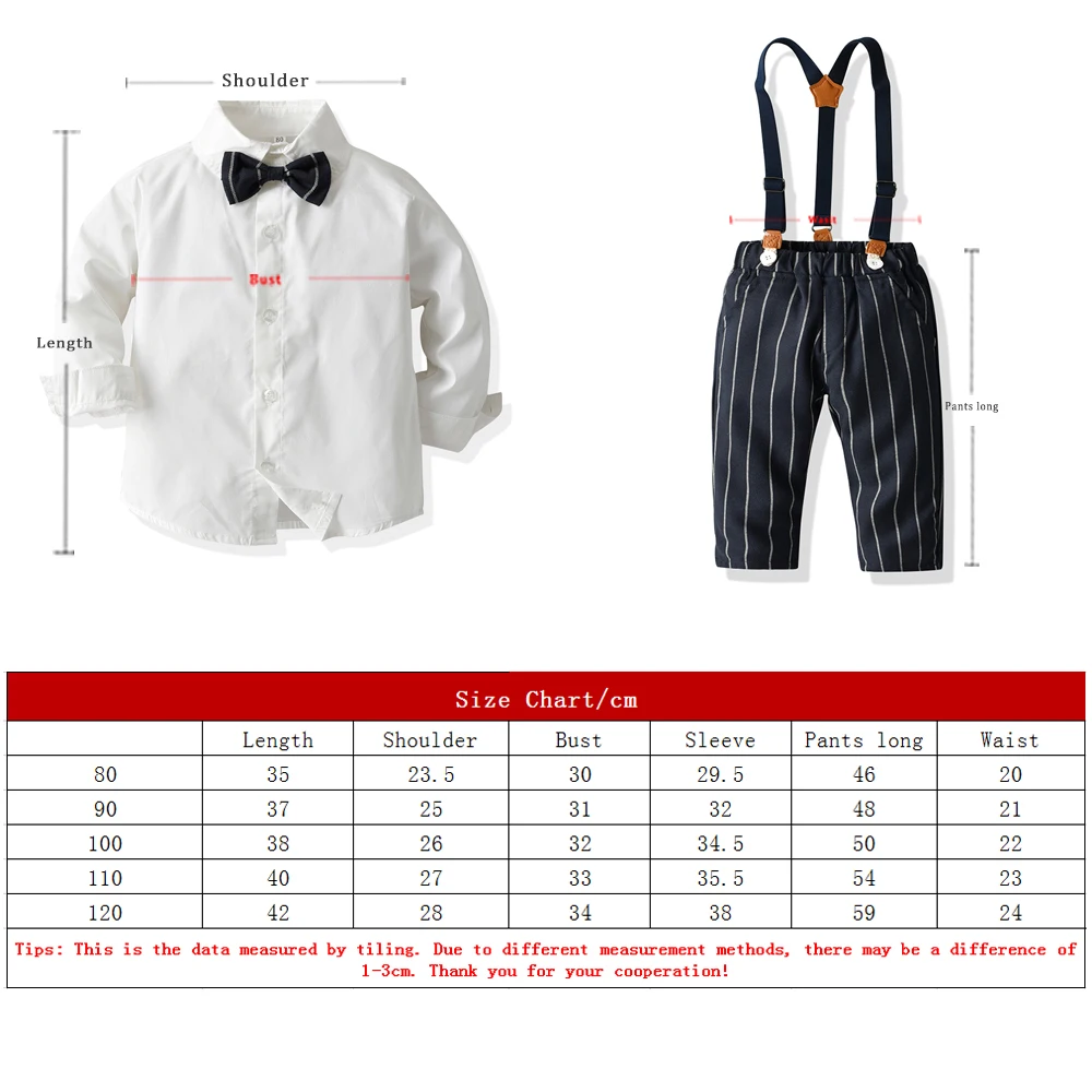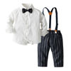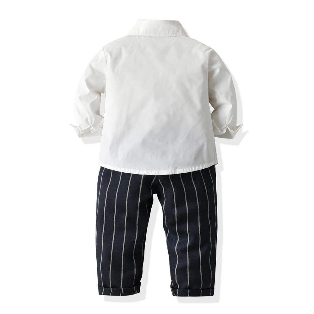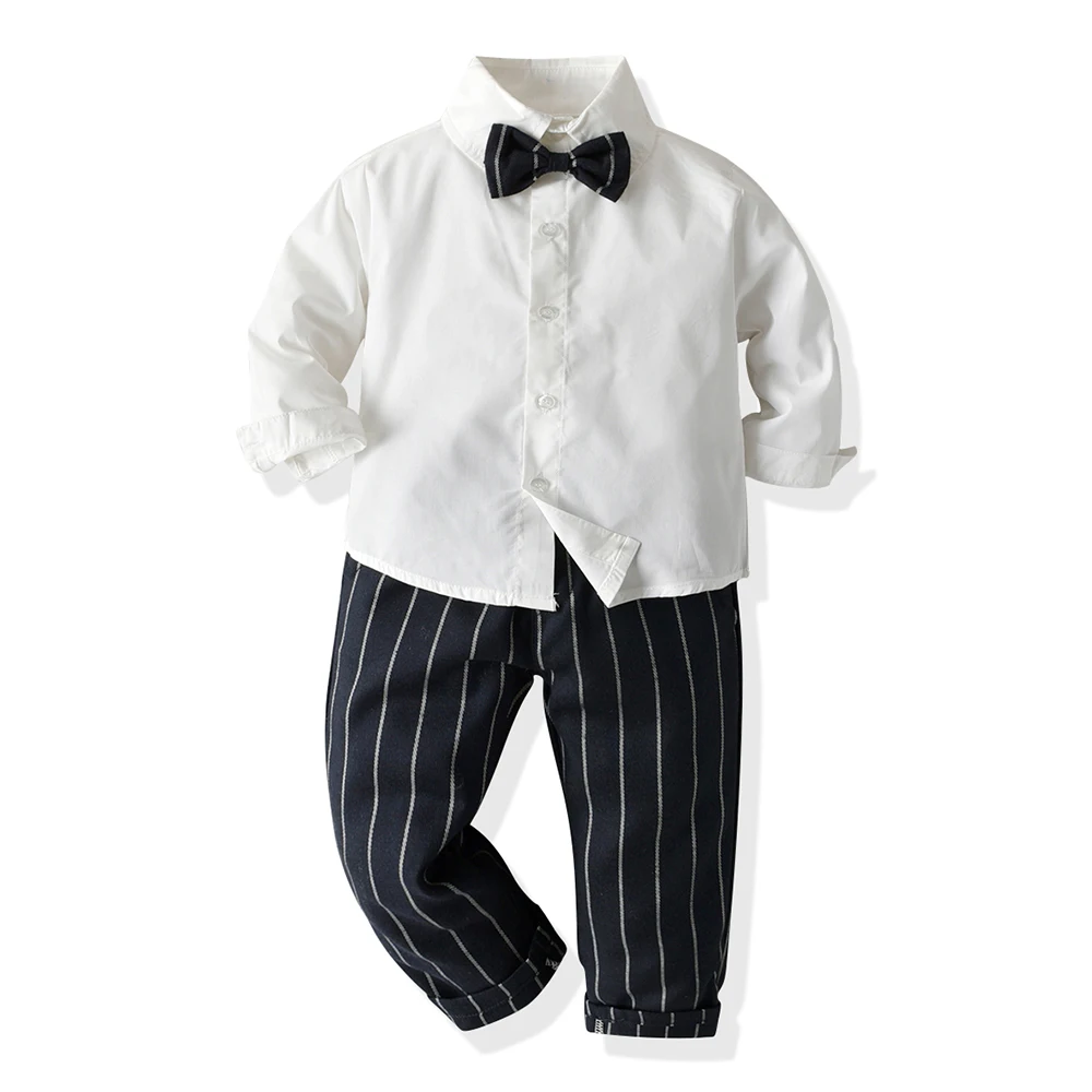 ملابس علوية و علوية ليتل بوي 2 قطعة وتتسابق مع ربطة القوس فيونكة عادية كم طويل بلايز + مخطط وزرة السراويل الدعاوى الاطفال الملابس مجموعة