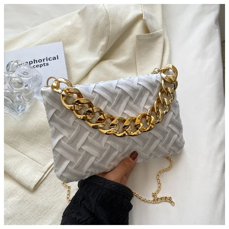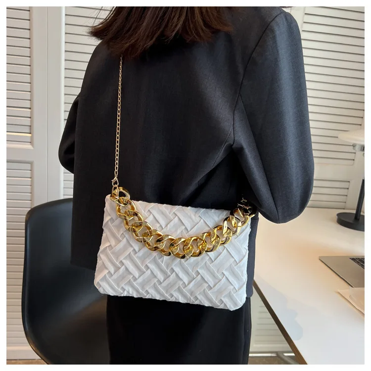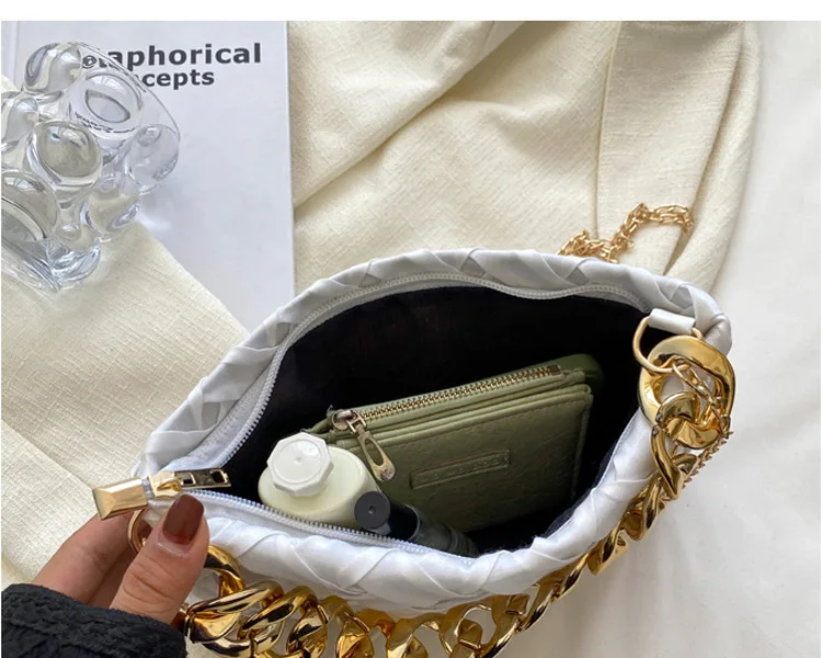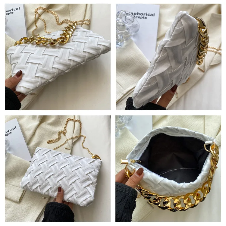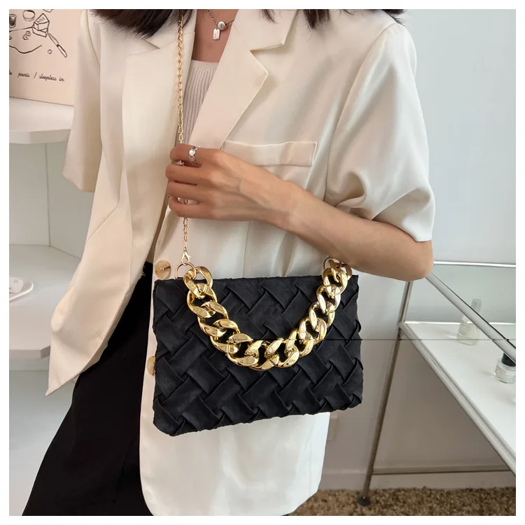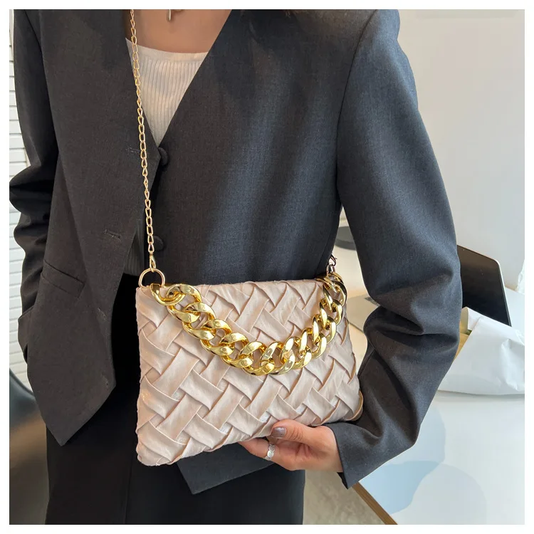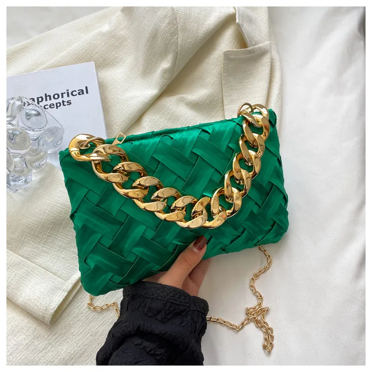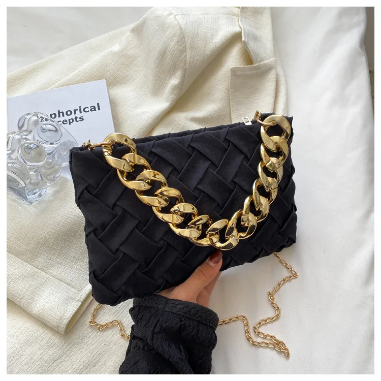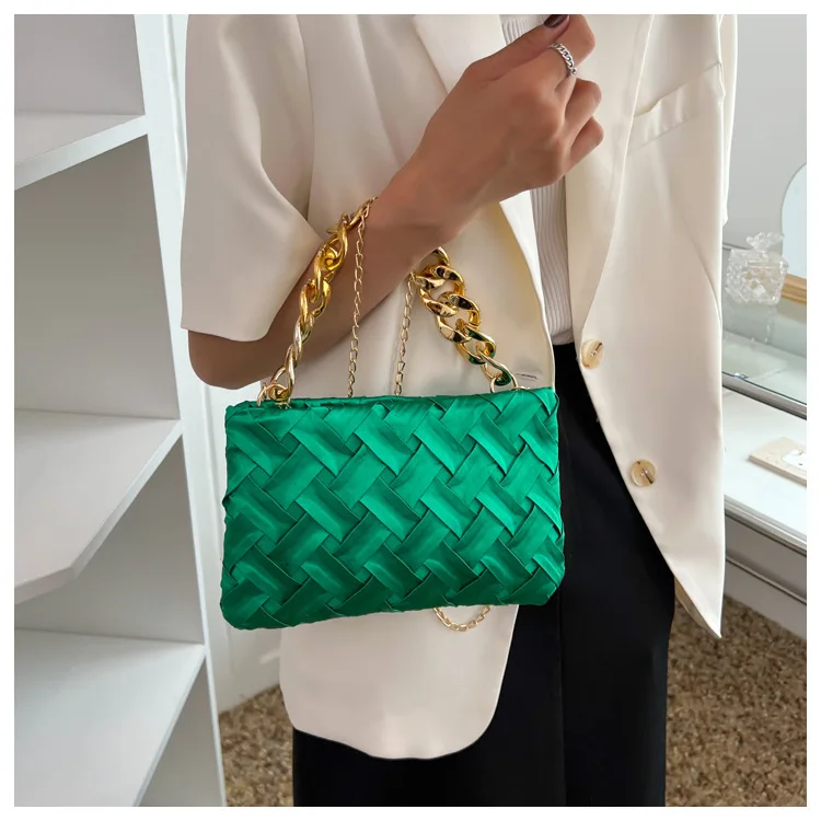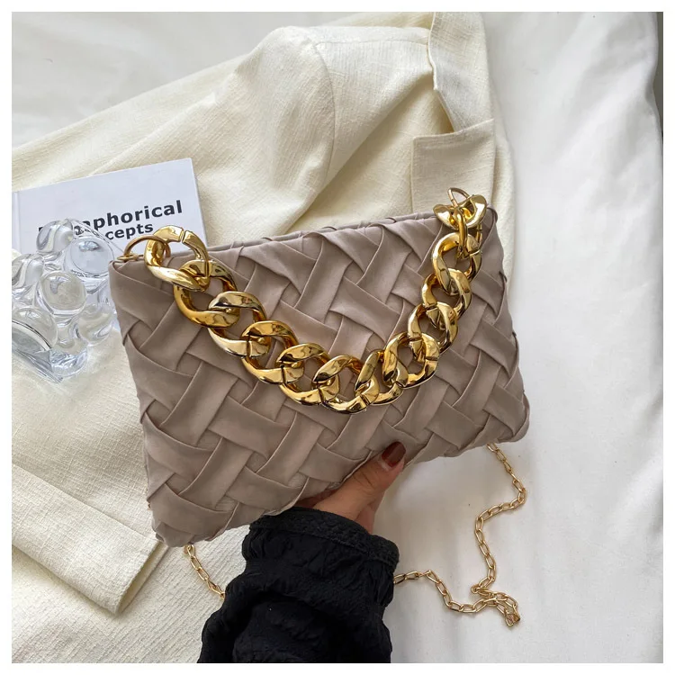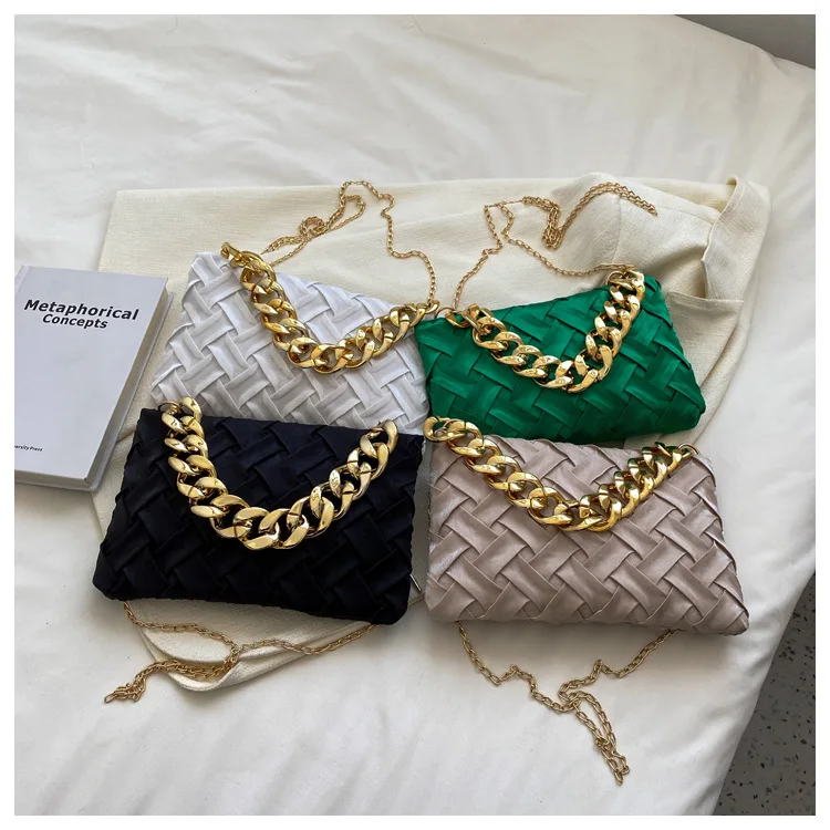 موضة الحياكة حقائب كروسبودي للنساء سلسلة سميكة حقيبة كتف مربع حقائب سيدات ومحافظ