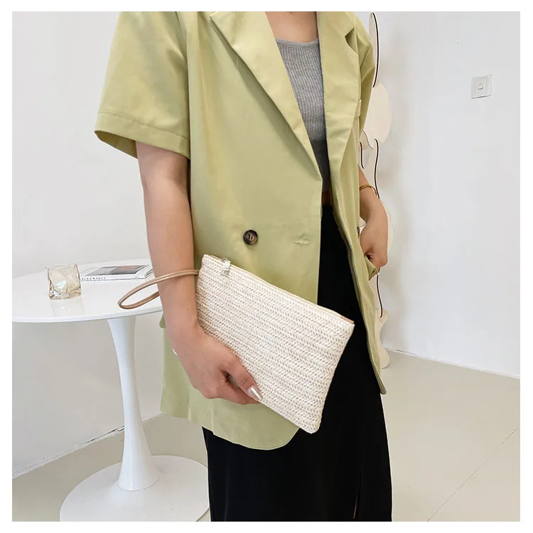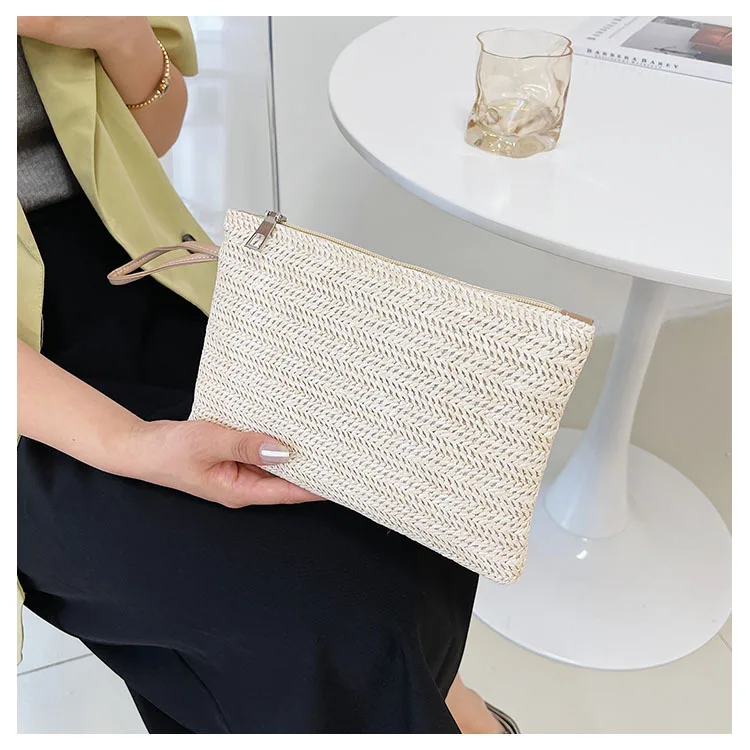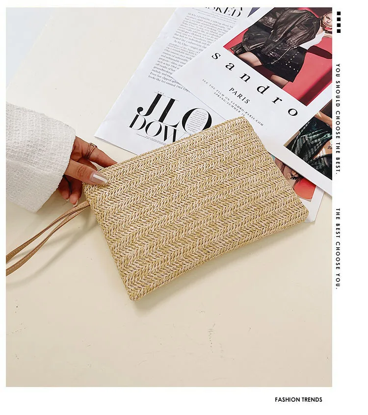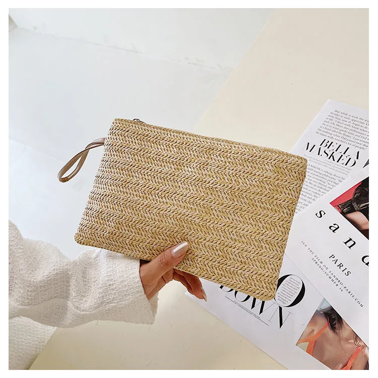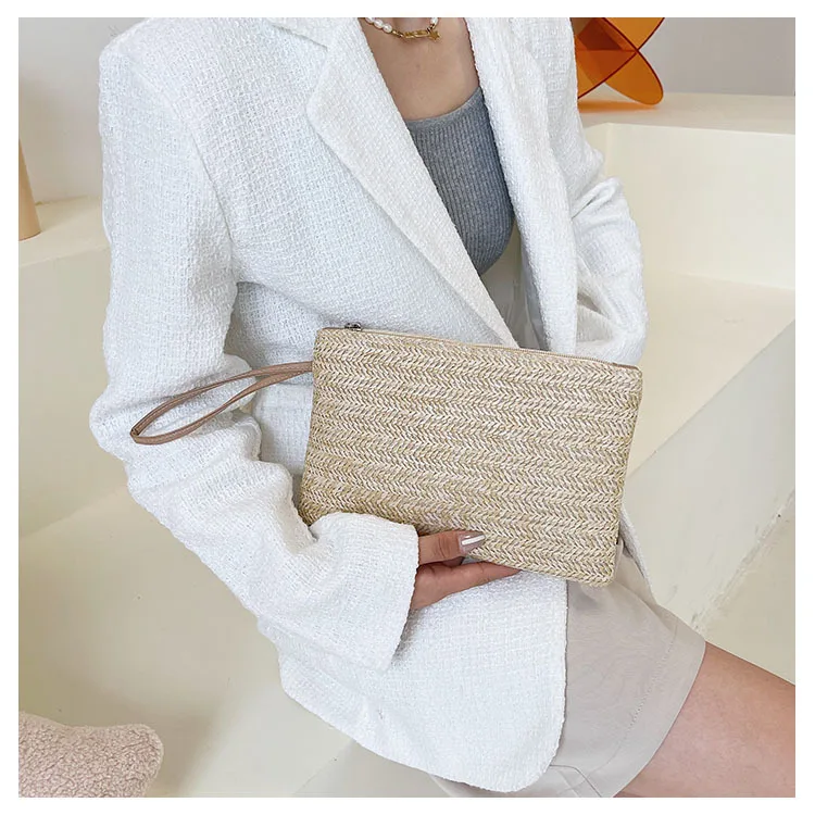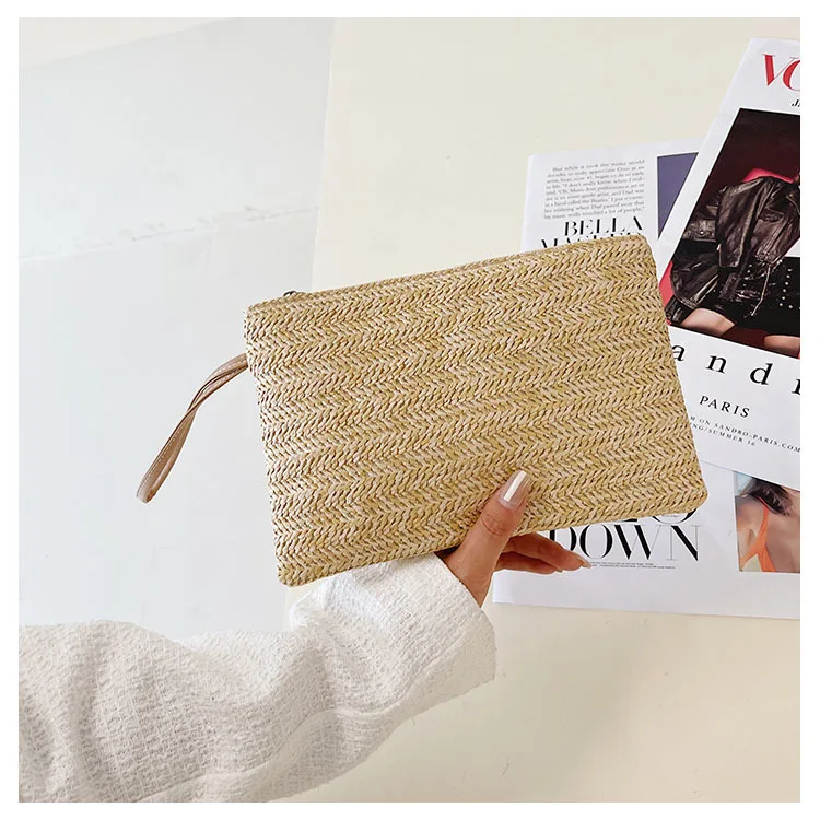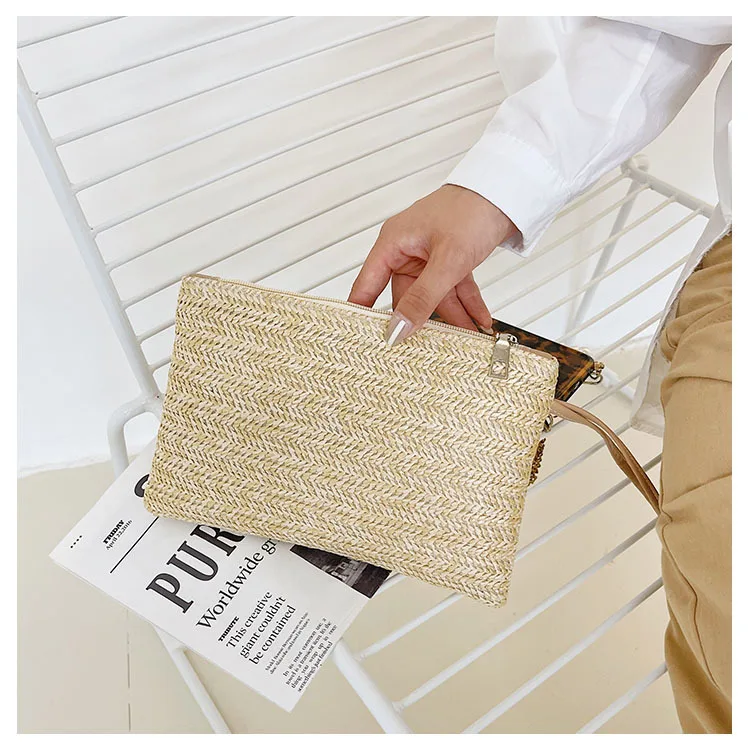 نسج حقيبة موضة السيدات السوار مخلب المرأة اليومية المال الهاتف مخلب الصلبة القش المنسوجة عملة محفظة الشاطئ المحفظة حامل بطاقة