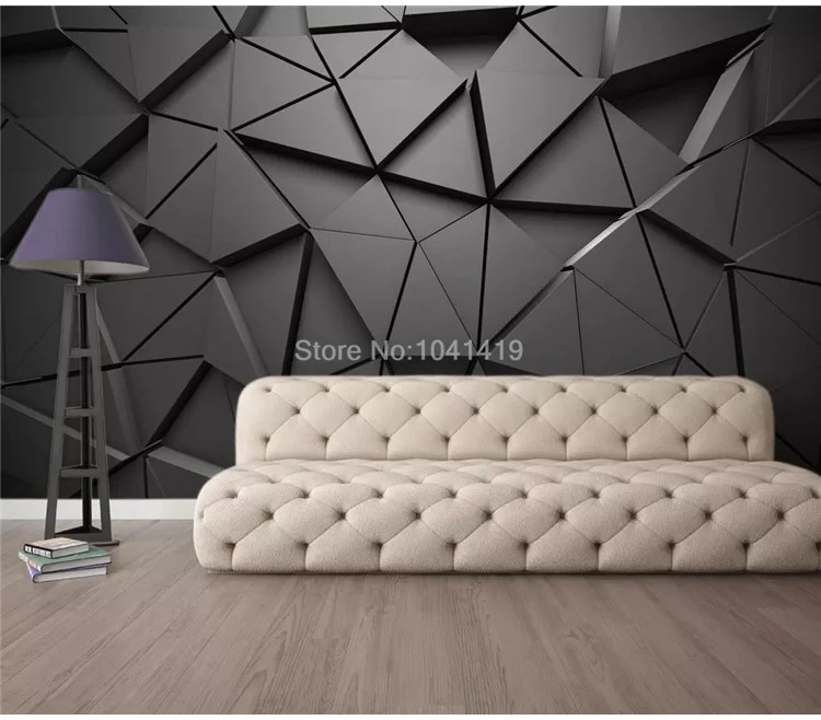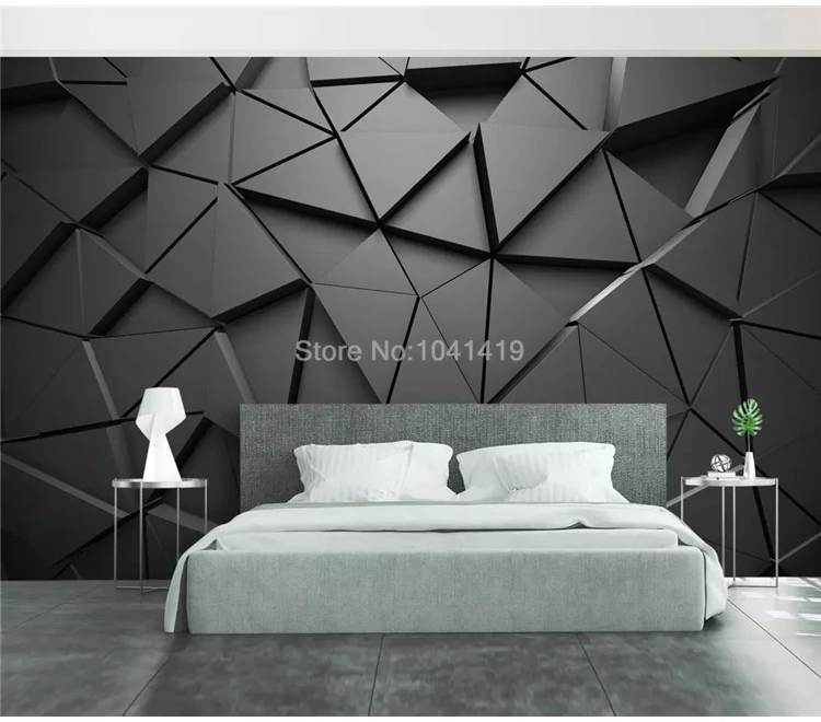 ورق حائط ثلاثي الأبعاد بنمط مثلث رمادي ، ورق حائط مخصص للجدار خلف التلفزيون ، غرفة المعيشة ، غرفة النوم