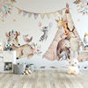 ورق حائط مخصص ثلاثي الأبعاد ، ورق حائط كرتوني ، حيوان ، غزال ، زرافة ، غرفة نوم الأطفال ، لوحة خلفية ، ورق حائط ، ديكور منزلي