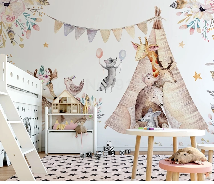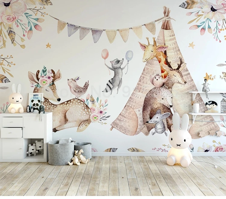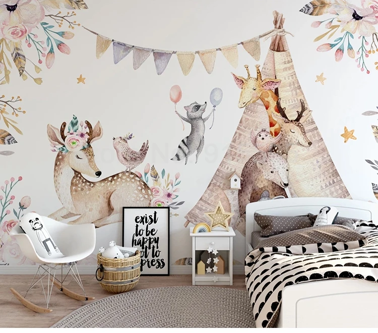 ورق حائط مخصص ثلاثي الأبعاد ، ورق حائط كرتوني ، حيوان ، غزال ، زرافة ، غرفة نوم الأطفال ، لوحة خلفية ، ورق حائط ، ديكور منزلي