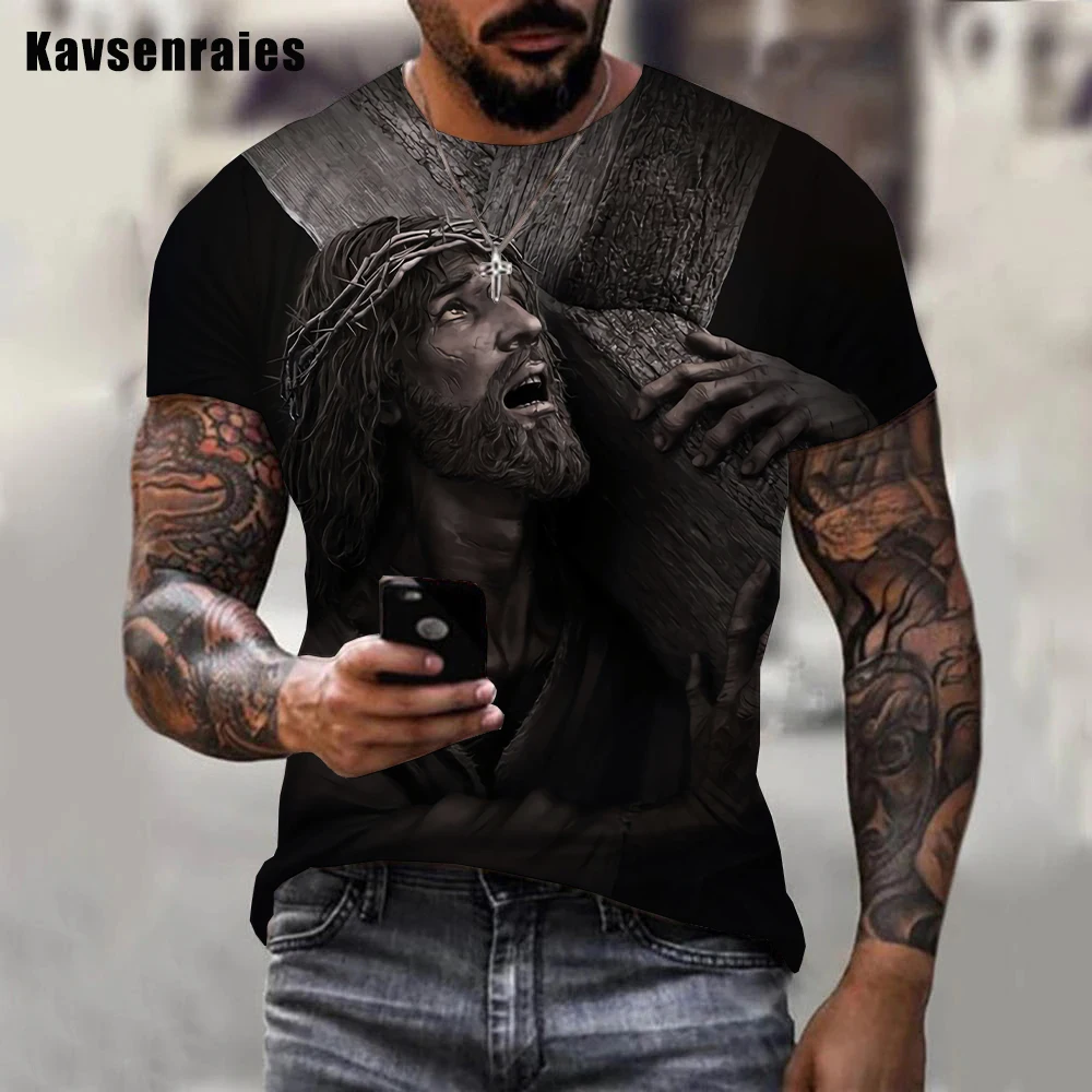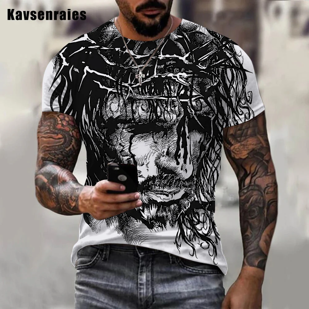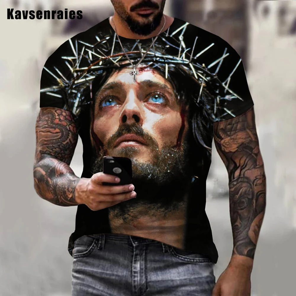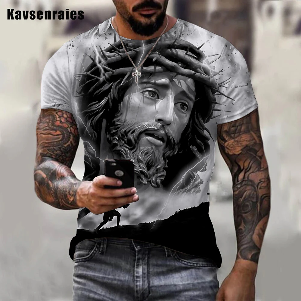 يسوع المسيح ثلاثية الأبعاد تي شيرت مطبوع الرجال النساء الصيف موضة عادية تي شيرت رائع بأكمام قصيرة Harajuku ملابس الشارع الشهير المتضخم