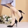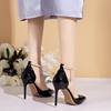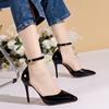 023 مثير سلسلة حبة براءات الاختراع والجلود النساء الصنادل الكاحل حزام خنجر مضخات أشار تو مثير خنجر كعب أحذية Customize33-46