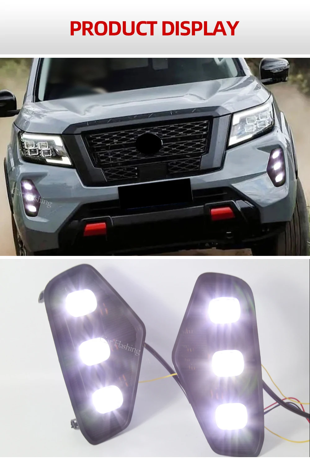 1 مجموعة LED DRL الضباب أضواء الضباب مصباح إضاءة للضباب غطاء النهار تشغيل ضوء بدوره إشارة لنيسان نافارا NP300 2020 2021 2022