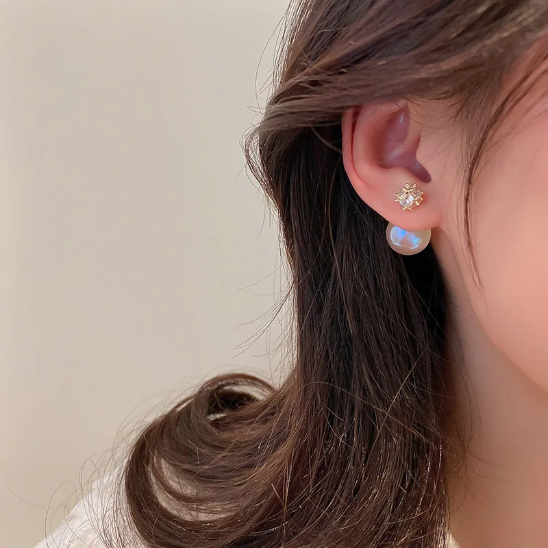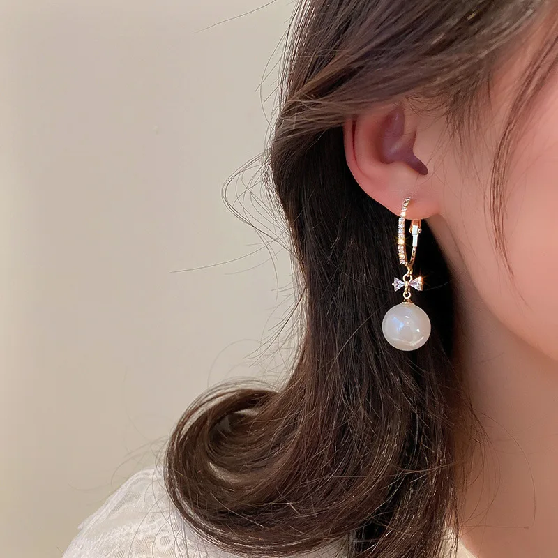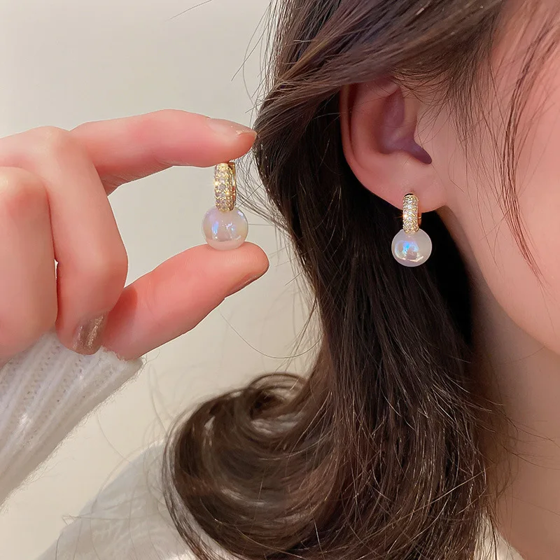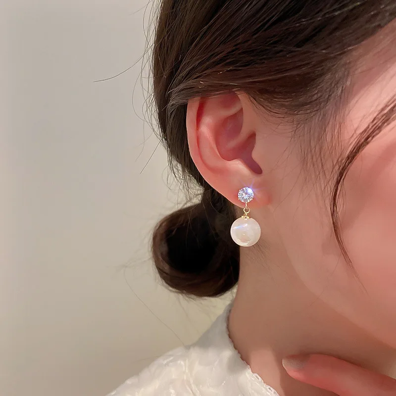 1 زوج النساء الفتيات اللؤلؤ حجر الراين أقراط أقراط للأذن الكورية نمط اكسسوارات أنيقة للنساء مجوهرات إسقاط أقراط