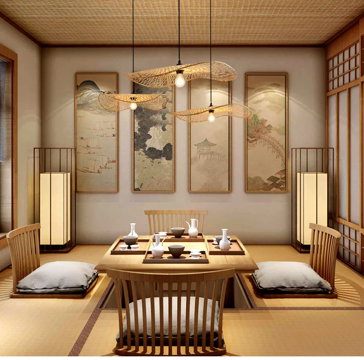 1 قطعة اليد المنسوجة الخيزران قلادة أضواء جنوب شرق آسيا ديا 35/45 سنتيمتر الروطان الخوص الثريا الطعام Rroom الخيزران الفن مصباح