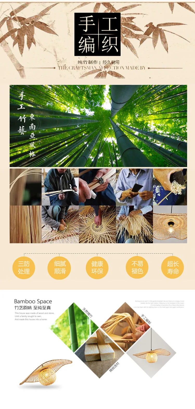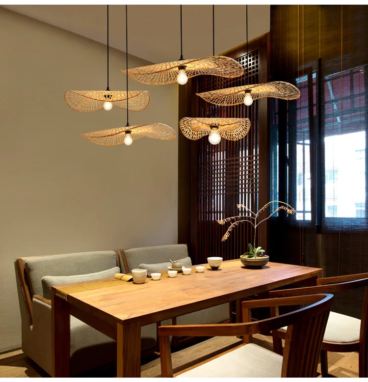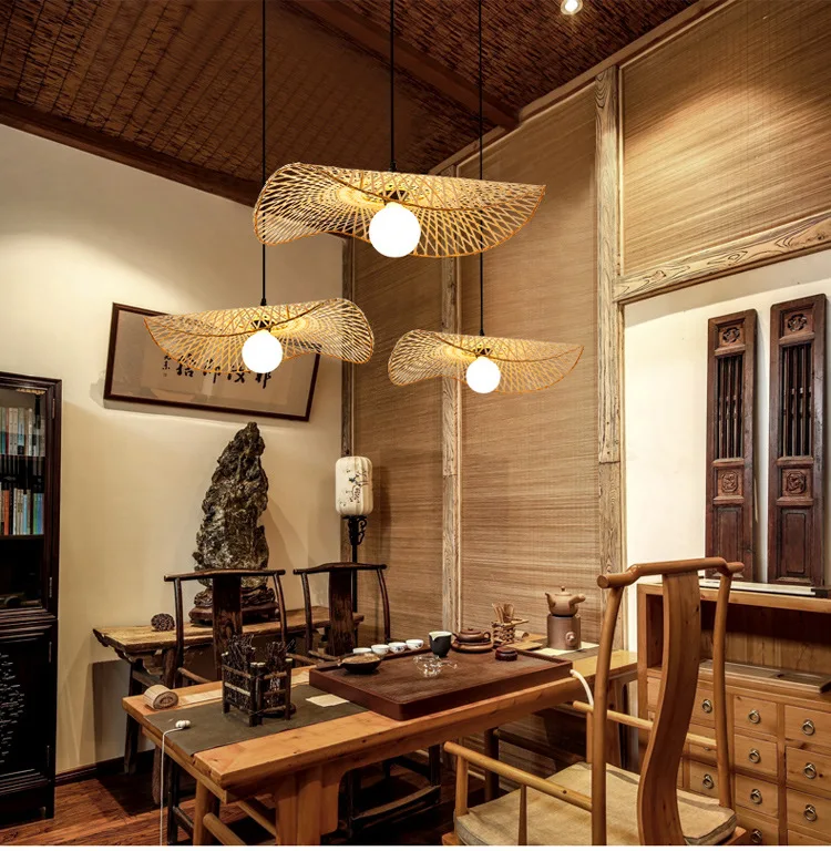 1 قطعة اليد المنسوجة الخيزران قلادة أضواء جنوب شرق آسيا ديا 35/45 سنتيمتر الروطان الخوص الثريا الطعام Rroom الخيزران الفن مصباح