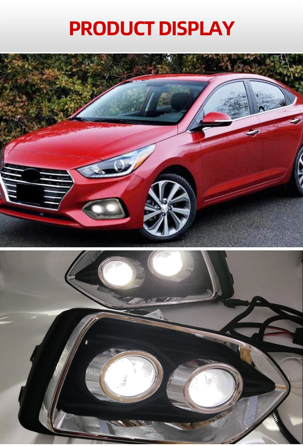 1 مجموعة لشركة هيونداي أكسنت سولاريس 2017 2018 2019 2020 سيارة DRL مصباح LED النهار تشغيل مصباح إضاءة للضباب غطاء مقاوم للماء