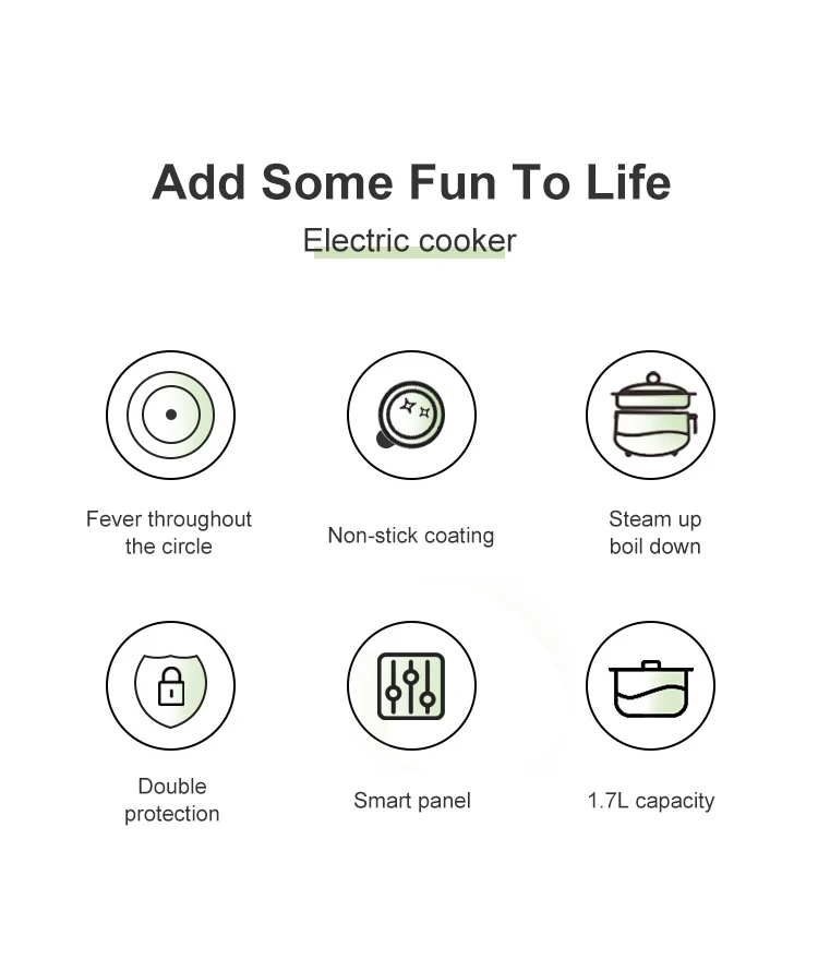 1.7L ماكينة طهي كهربائية متعددة الوظائف إناء/ قدر طبقة واحدة/مزدوجة/قدر وعاء طبخ أرز كهربائي صغير ذكي غير لاصق