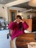 10 ألوان الوردي المرأة سترة المرأة الشتاء البلوزات البلوز الإناث الحياكة Overszie طويلة الأكمام فضفاضة محبوك قميص أبيض