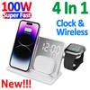 100 واط شاحن لاسلكي حامل 4 In1 LED الرقمية المنبه شحن سريع حوض محطة آيفون 14 13 iWatch 8 SamsungS21 S20