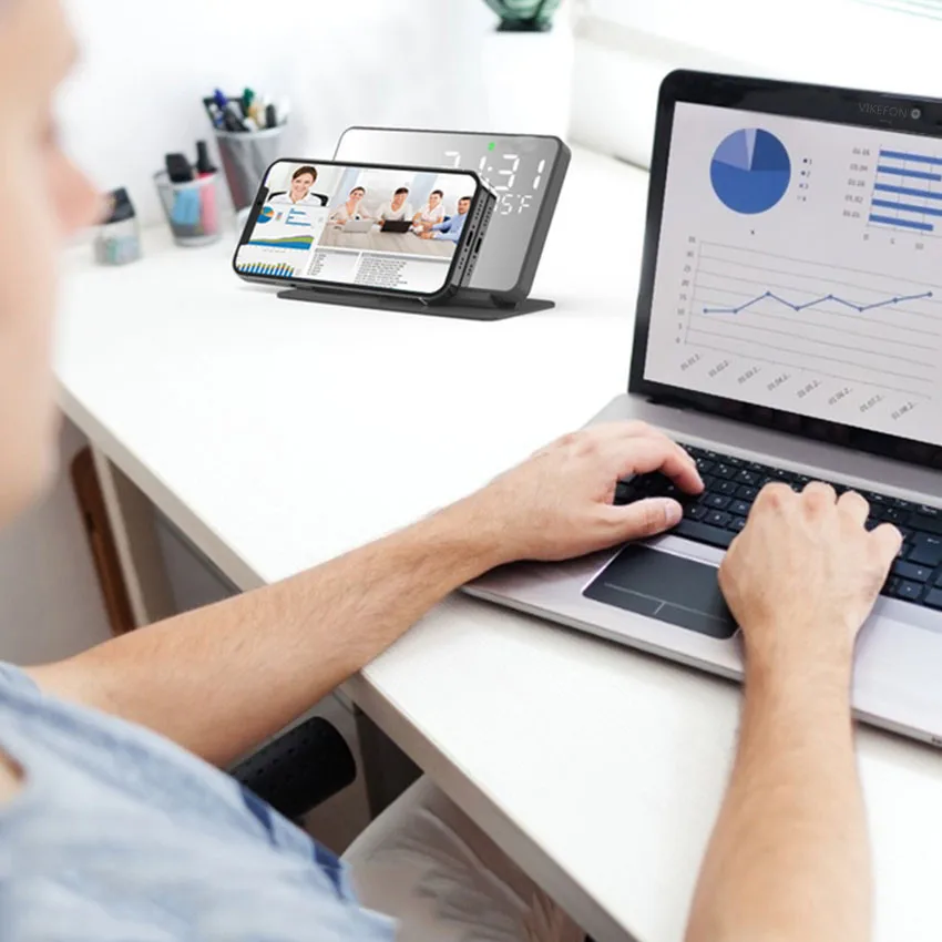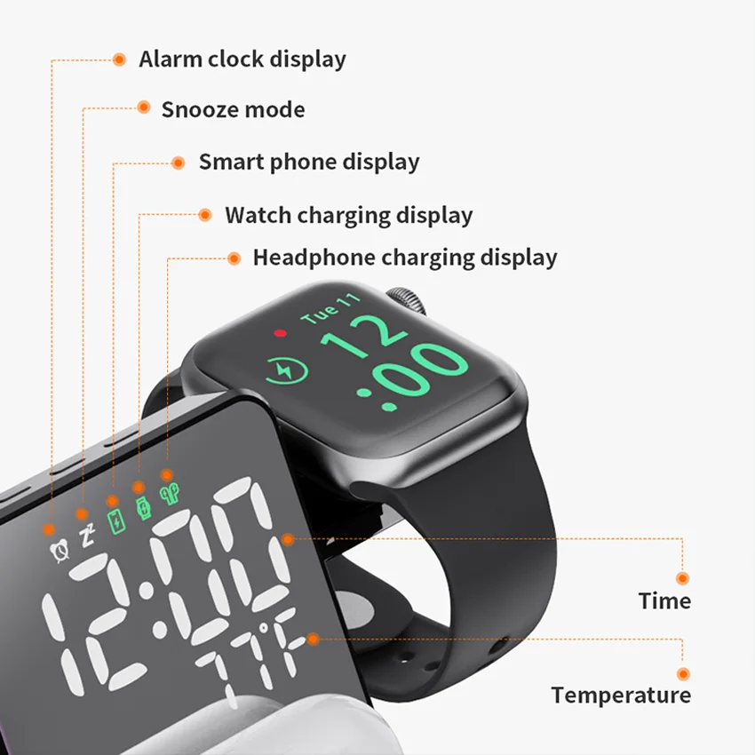 100 واط شاحن لاسلكي حامل 4 In1 LED الرقمية المنبه شحن سريع حوض محطة آيفون 14 13 iWatch 8 SamsungS21 S20