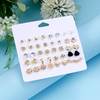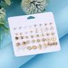 12 Pair Combination Earrings Set for Women Fashion Gold Color Silver Color Heart Four Leaves Rhinestone Earring Wedding Jewelry