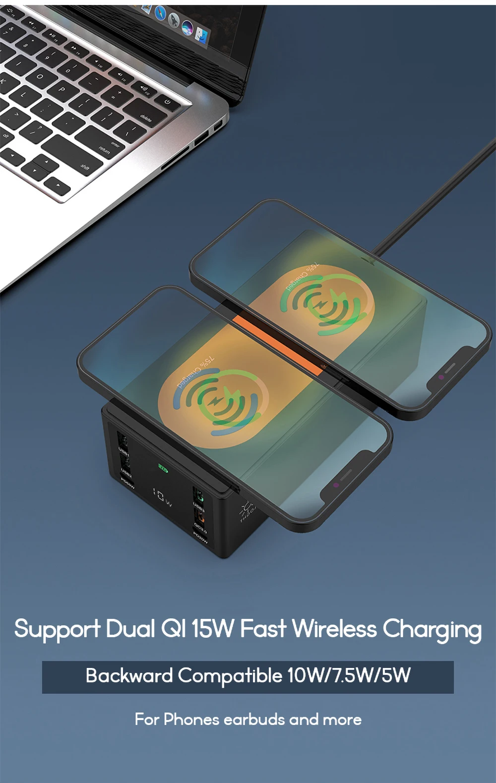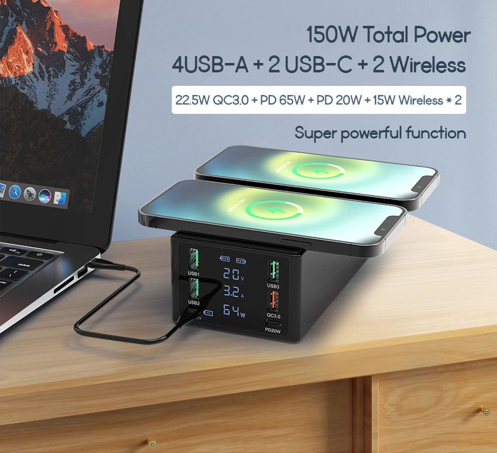 قاعدة شحن لاسلكيّة مزدوجة متعددة المنافذ بقدرة 150 واط