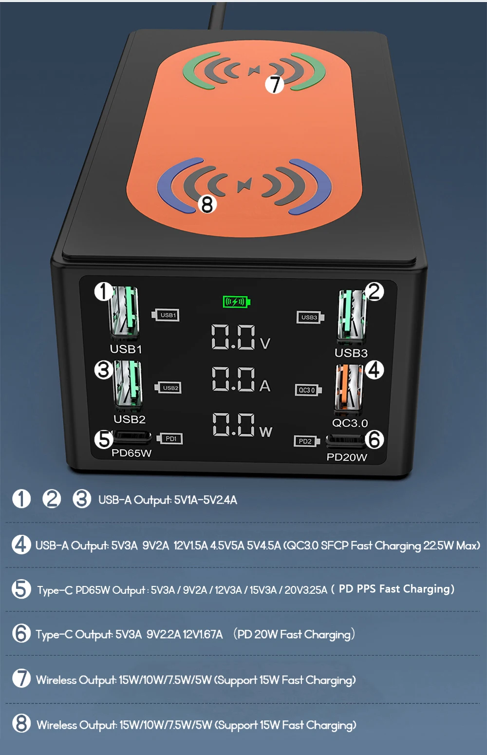 5. USB-A QC3.0 الناتج: 5V3A / 9V2A / 12V1.5A / 4.5V5A / 5V4.5A